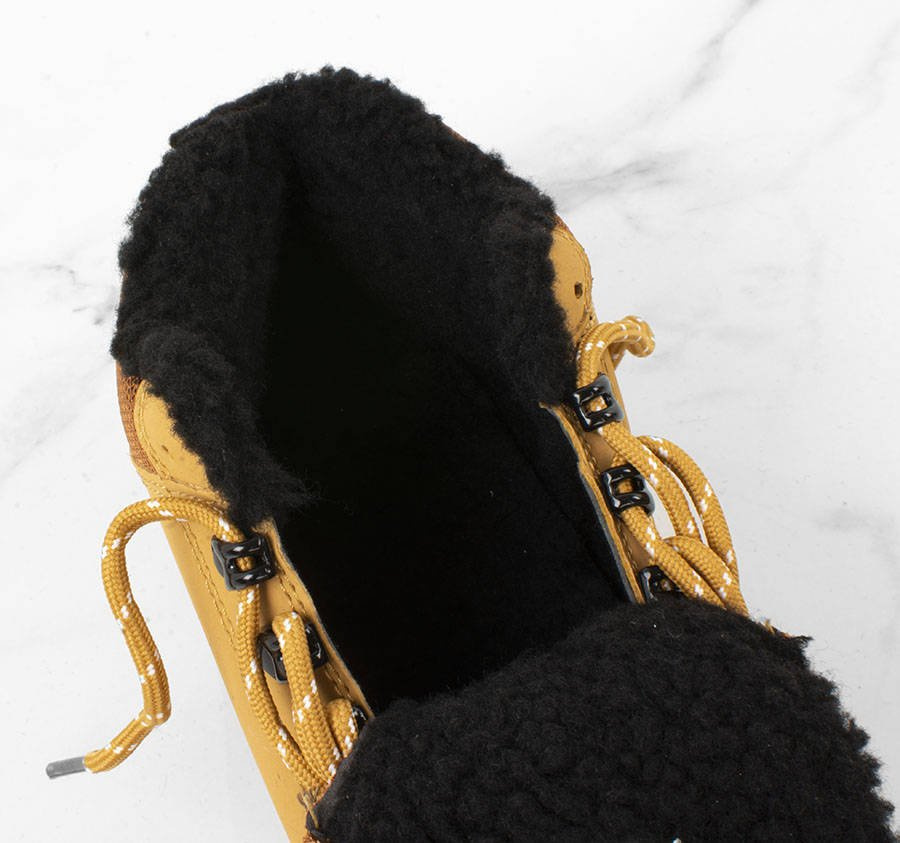 • Solidne brązowe traperki botki wykonane ze skóry ekologicznej, wewnątrz ocieplone kożuszkiem. Model posiada sznurowanie w dopasowanym kolorze do obuwia. Wygodne oraz ciepłe!