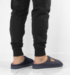 • Męskie, wygodne klapki na płaskiej podeszwie. Ocieplane futerkiem.