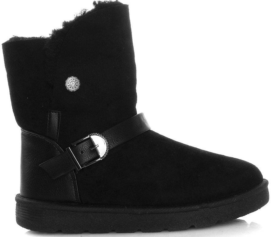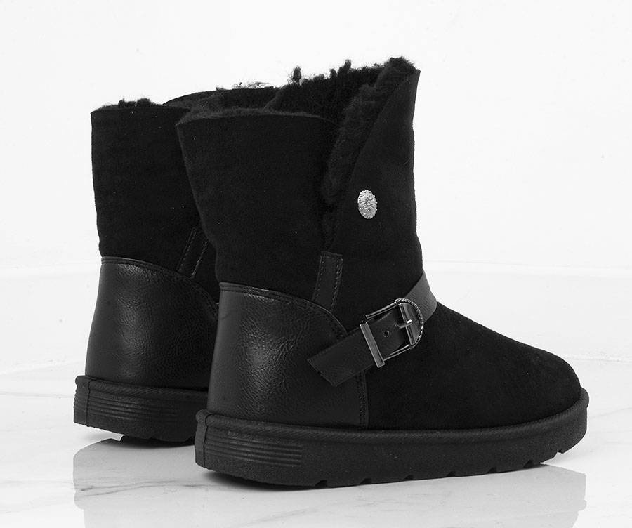 Stylowe śniegowce wykonane ze skóry ekologicznej zamszowej, bardzo ciepłe. Ozdobione klamrą. Środek buta ocieplony kożuszkiem.