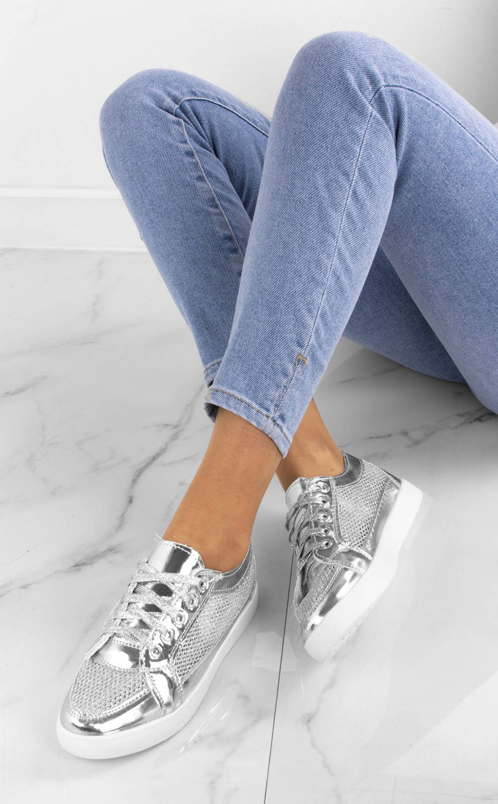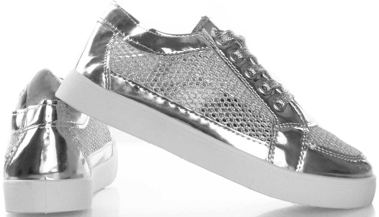 SREBRNE BROKATOWE TRAMPKI HORNIS
