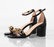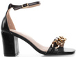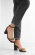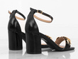 Modne czarne sandały wykonane z materiału skóropodobnego. Ozdobione stylowym łańcuszkiem, na stabilnym szerokim obcasie. Prawdziwy Hit, którego nie może zabraknąć w żaden szafie.