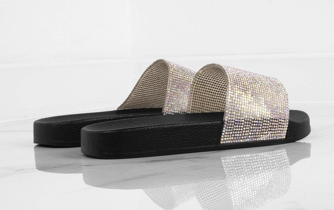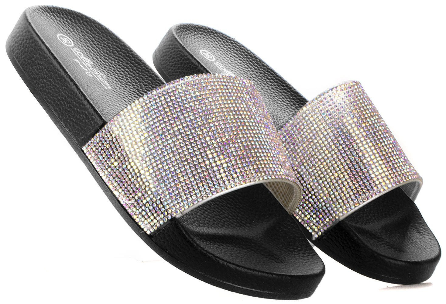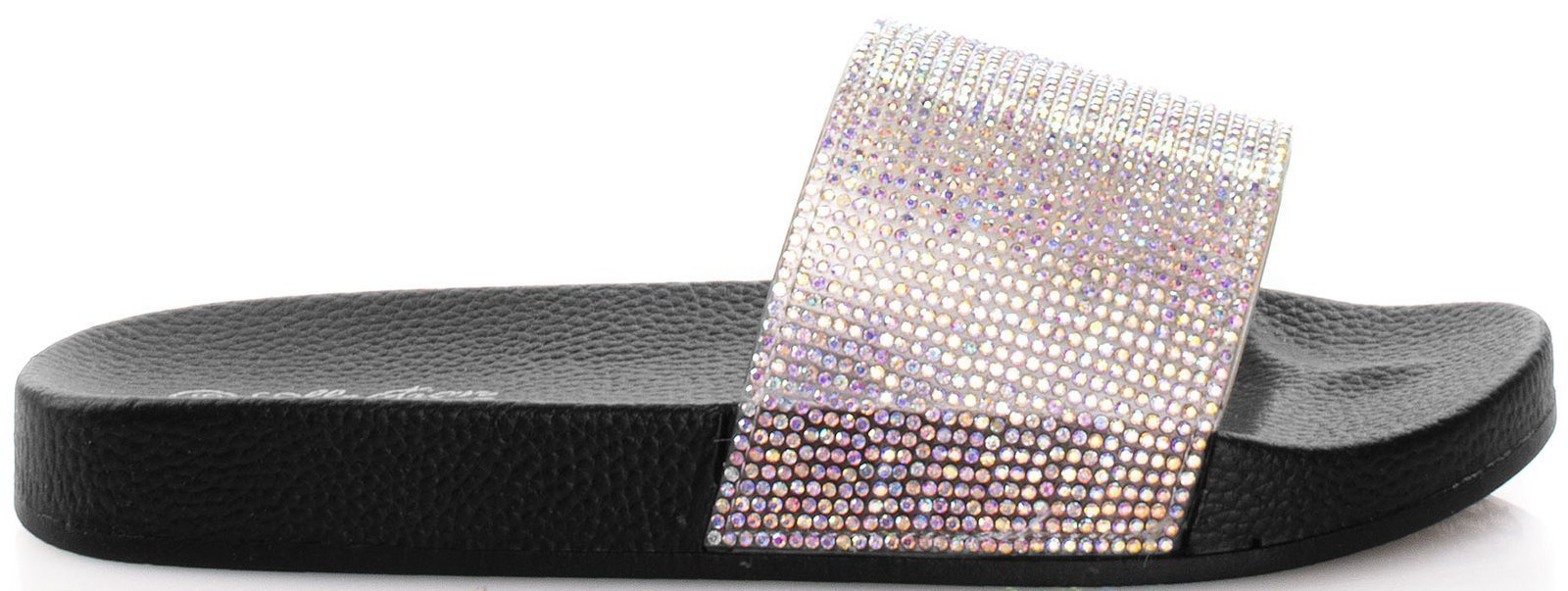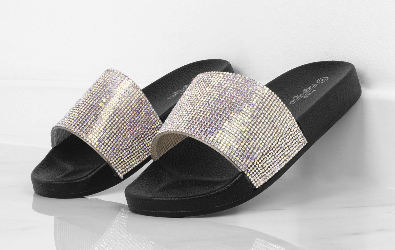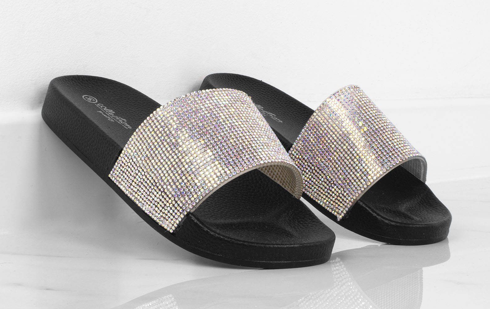 Klasyczne klapki z ozdobionym cyrkoniami, szerokim paskiem. Sprawdzą się w wielu letnich stylizacjach