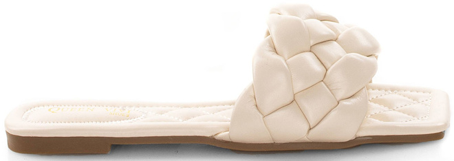 • Plecione klapki dostępne w 2 kolorach, wykonane ze skóry ekologicznej. Model o kwadratowym otwartym nosku oraz grubym plecionym pasku. Wygodne na płaskiej podeszwie.