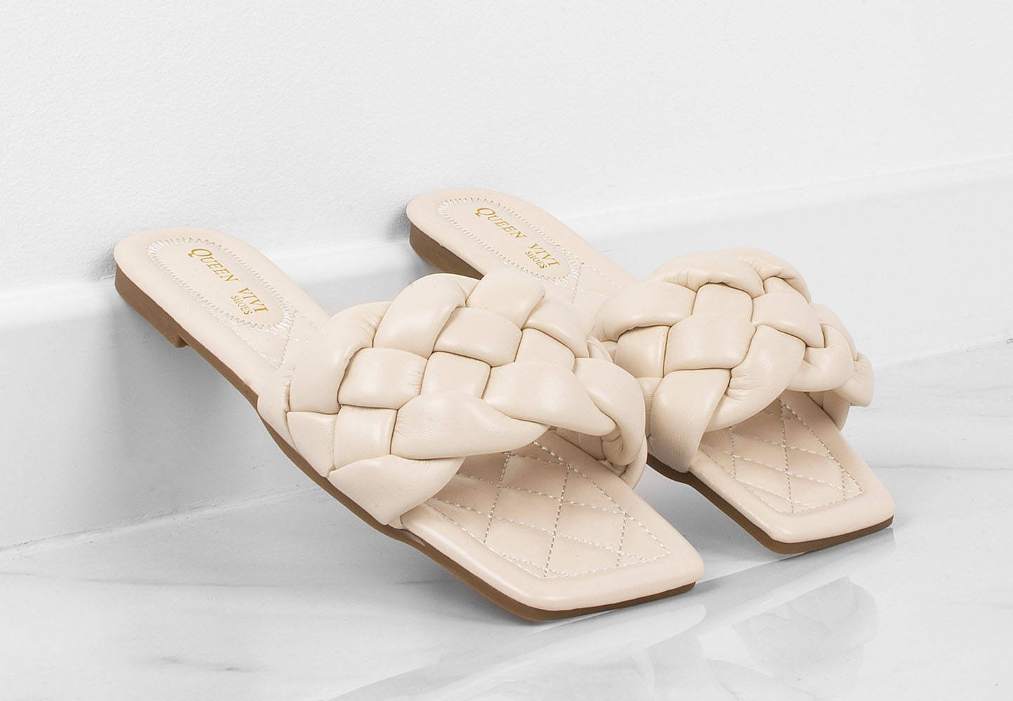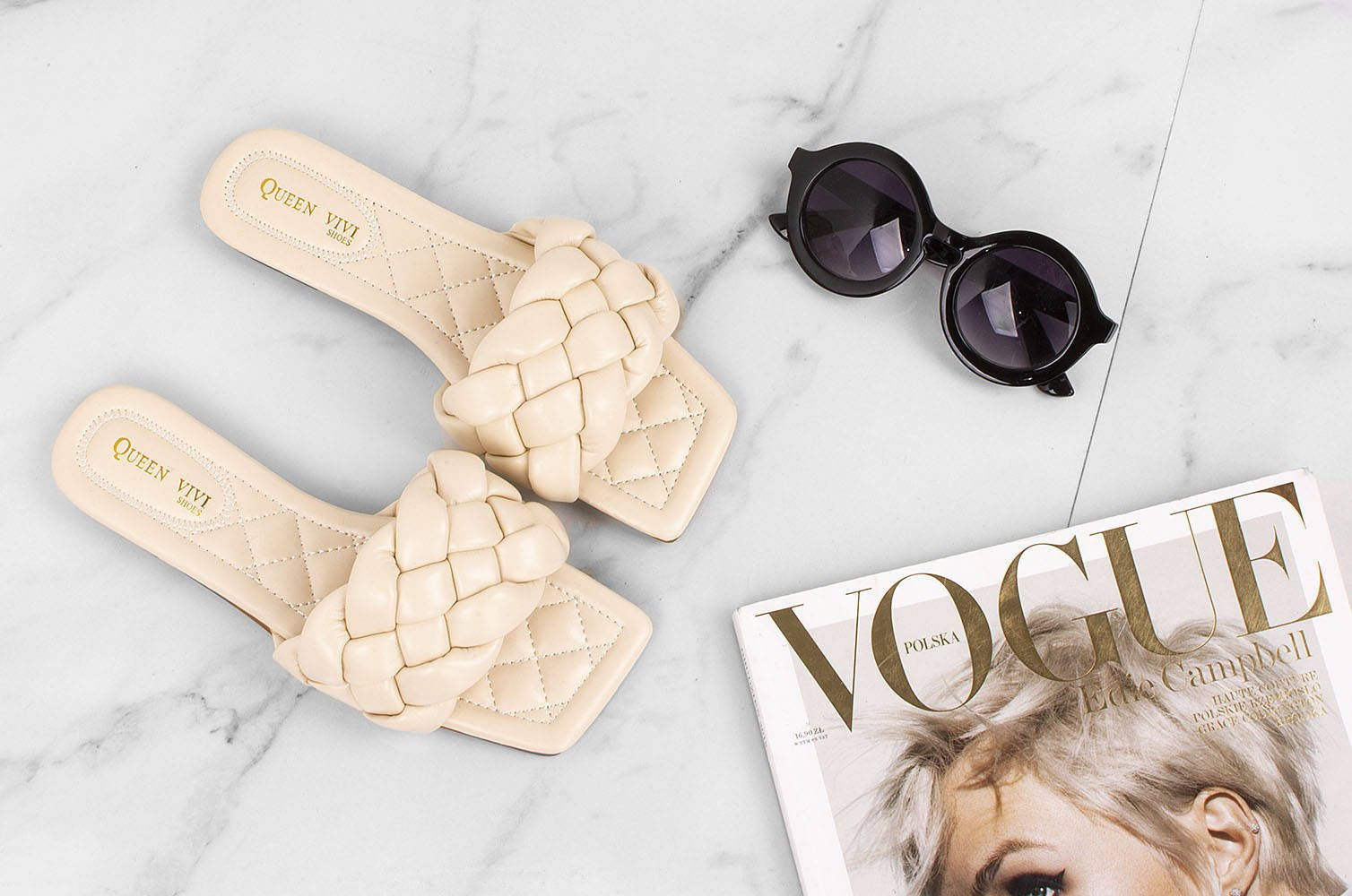 BEŻOWE PLECIONE KLAPKI ANDREA