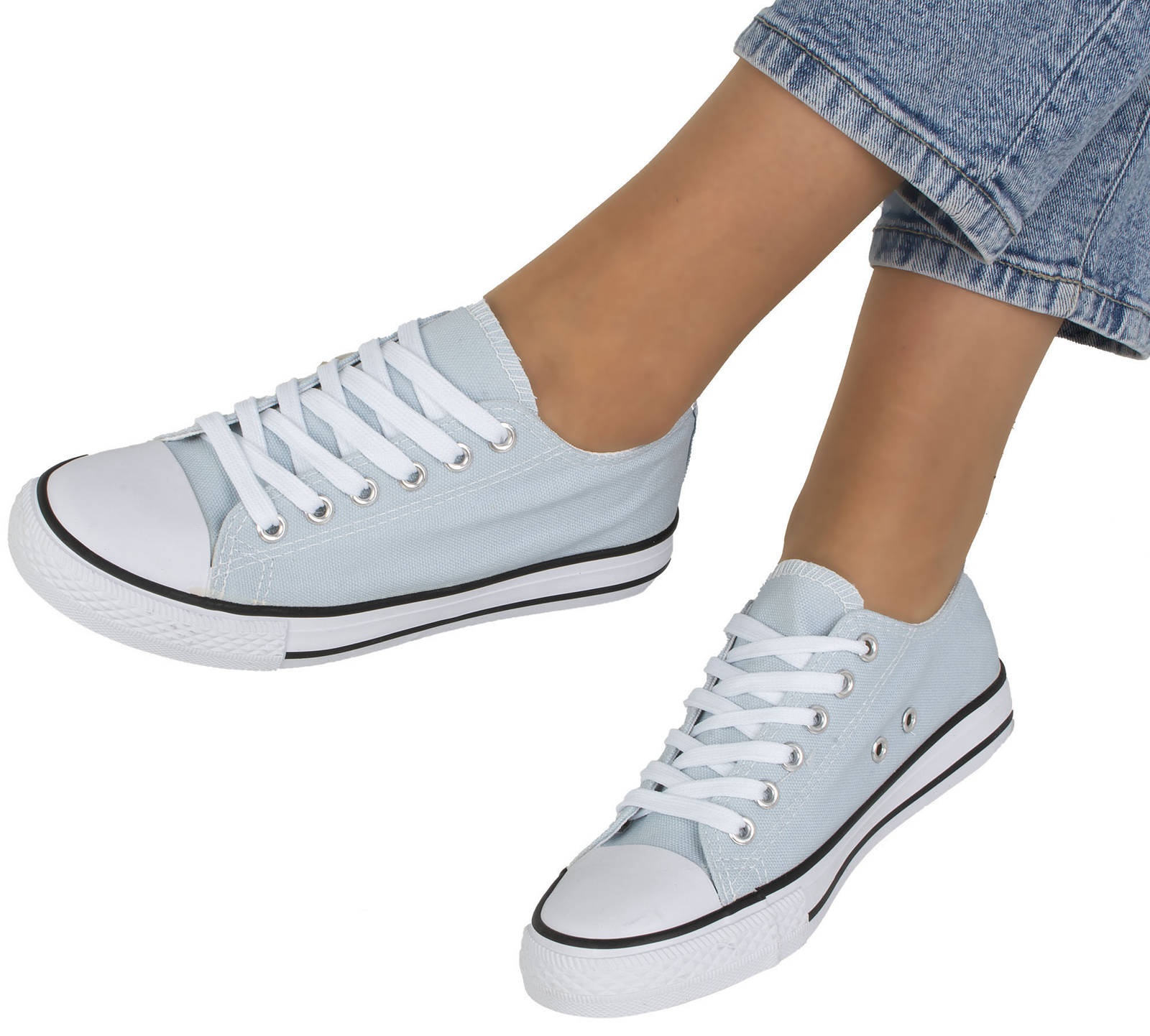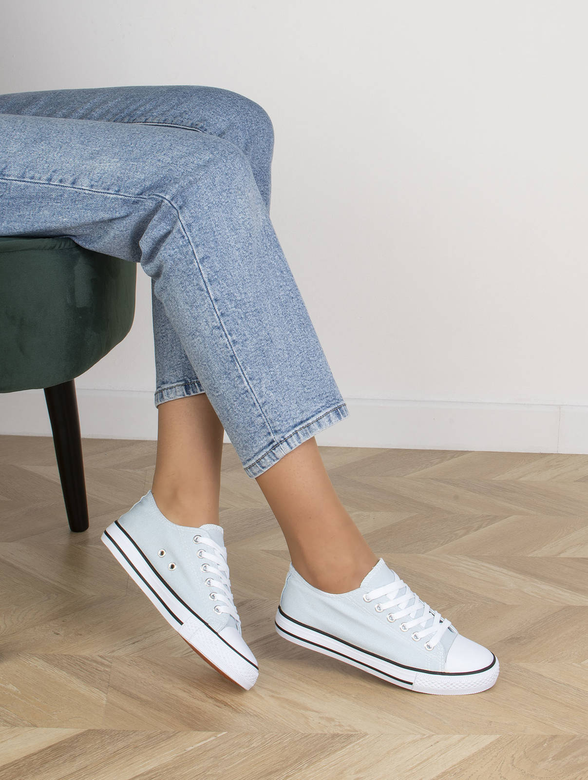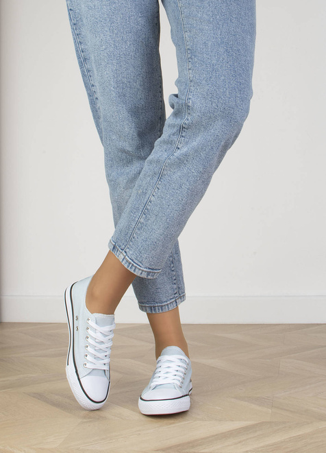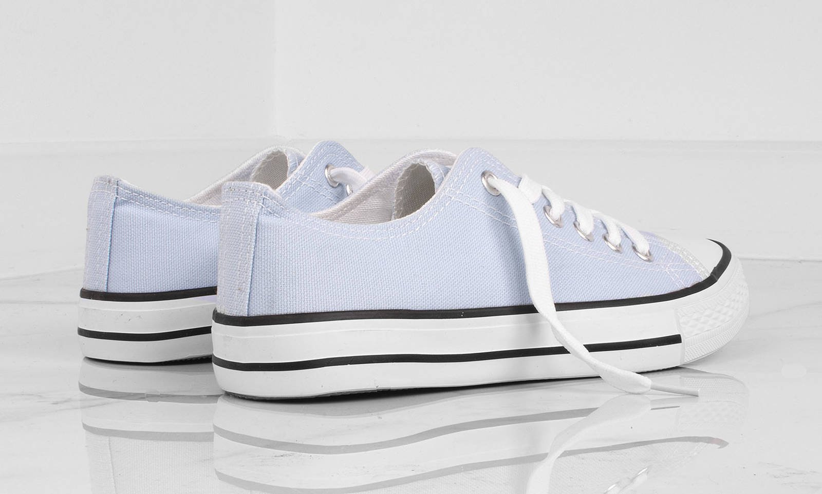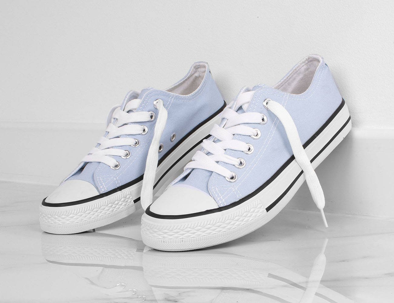 Trampki damskie wykonane z materiału tkaninowego, podeszwa gumowa. Model wiązany sznurówkami. Klasyczny model w modnym kolorze to hit tego roku!