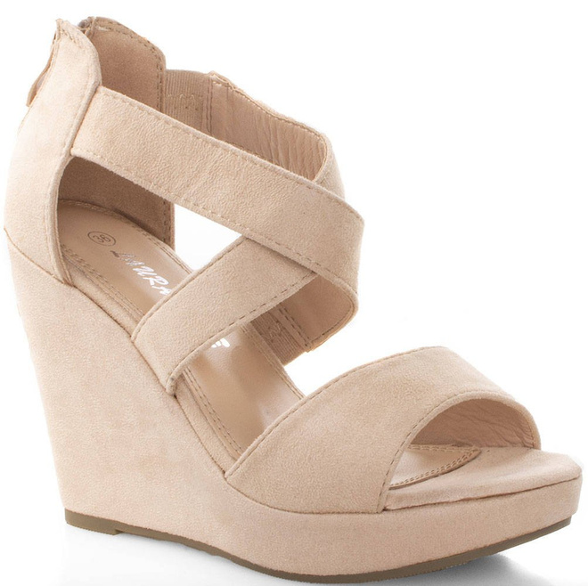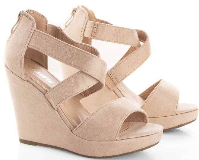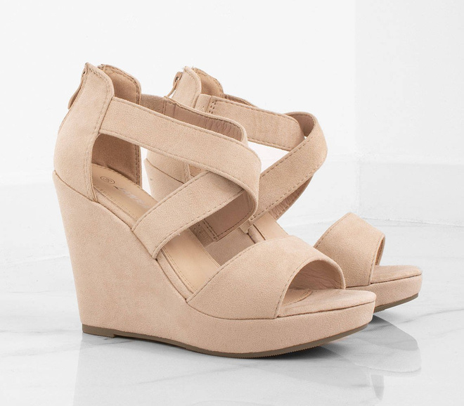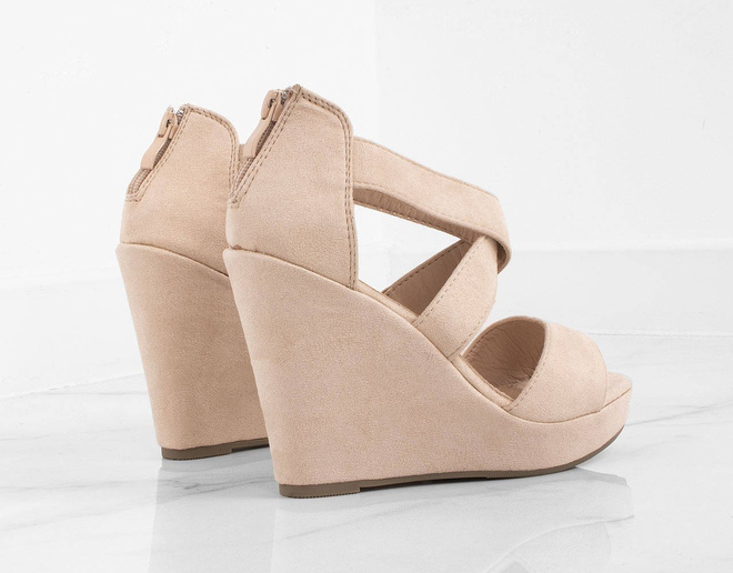 Klasyczne sandały damskie wykonane ze skóry ekologicznej. Model na wysokim ale stabilnym i wygodnym koturnie. Zapięcie w postaci suwaka umieszczony na pięcie. Espadryle posiadają krzyżujące się paski na stopie z dodatkową elastyczną wstawką