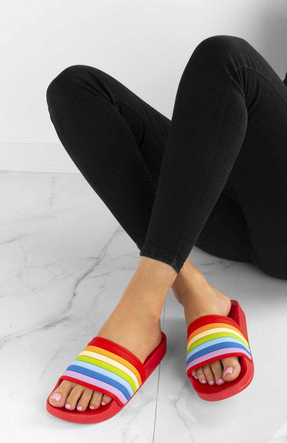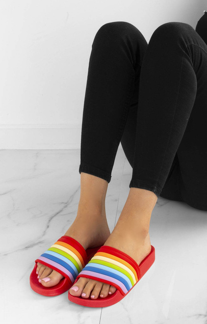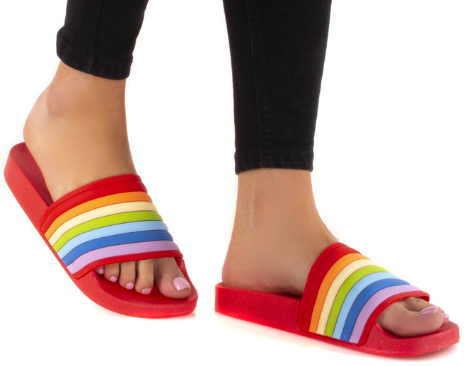 CZERWONE GUMOWE KLAPKI RAINBOW