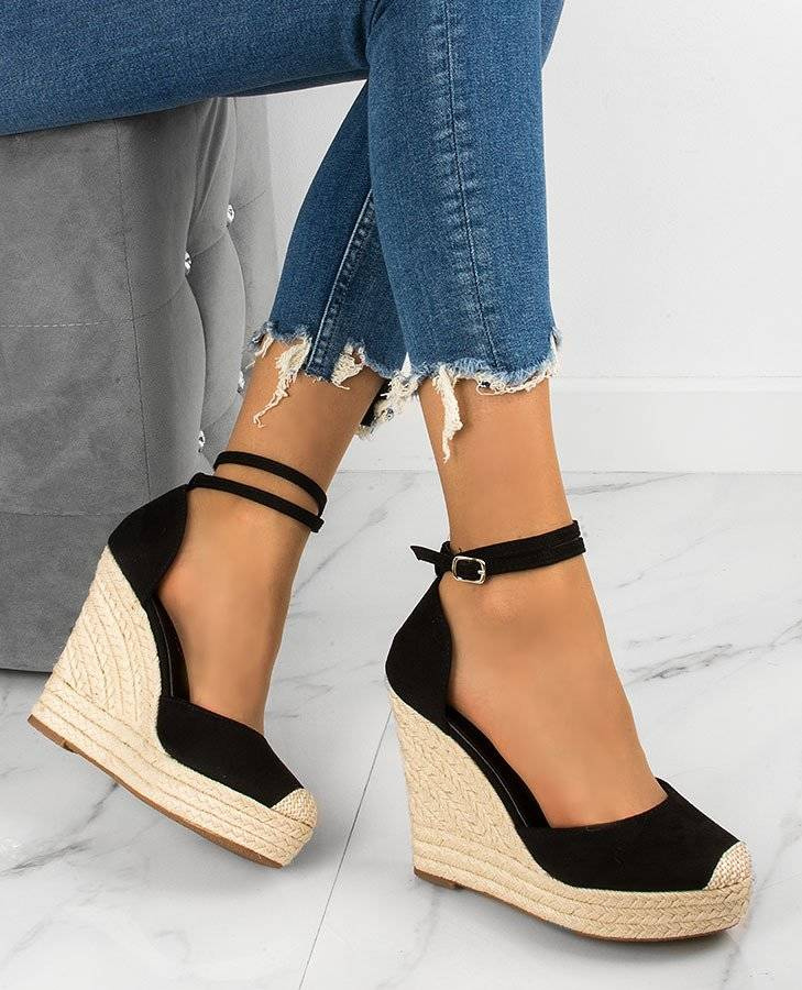 CZARNE SANDAŁY NA KOTURNIE ESPADRYLE AVANII