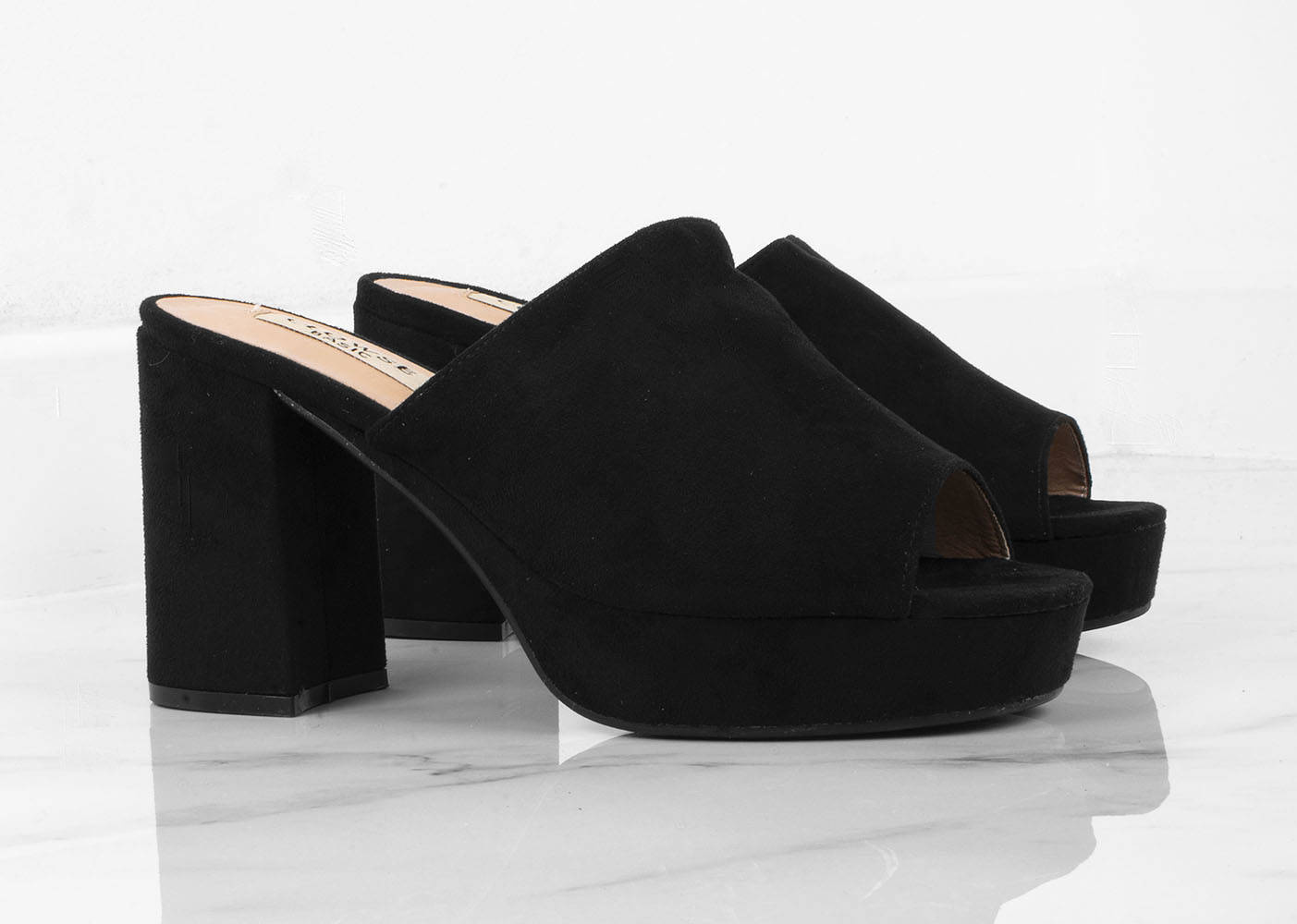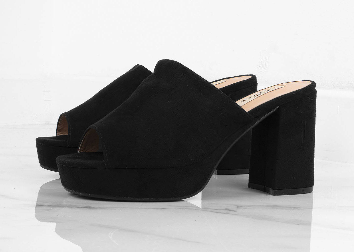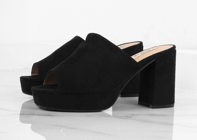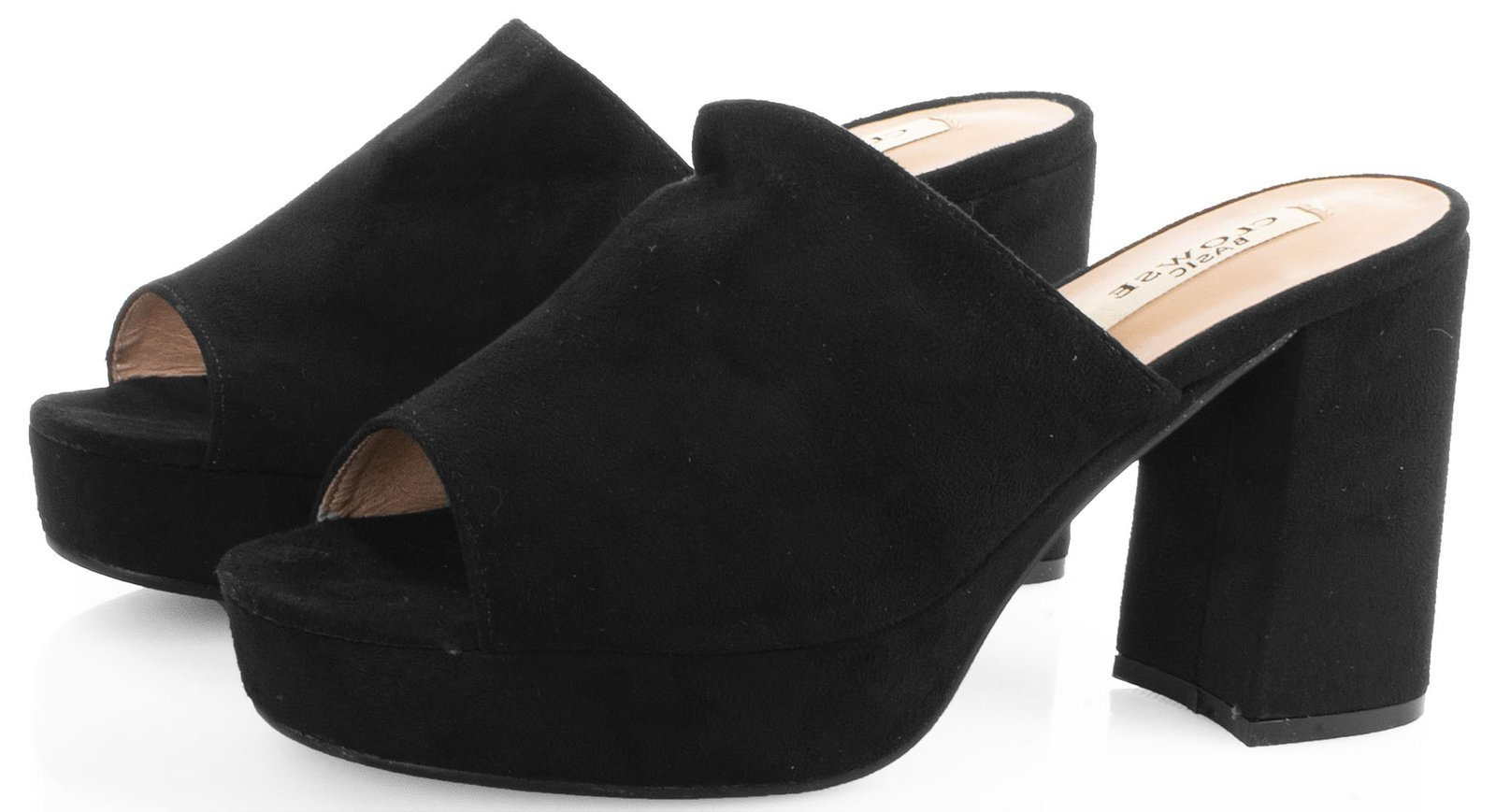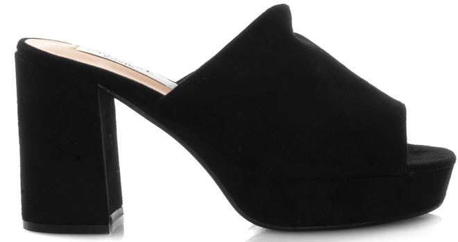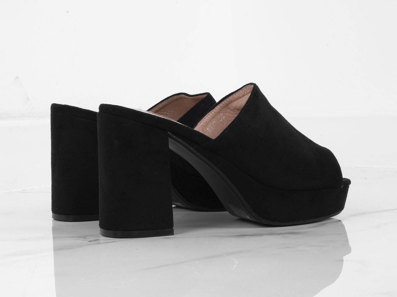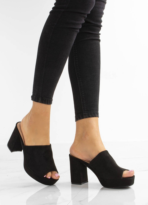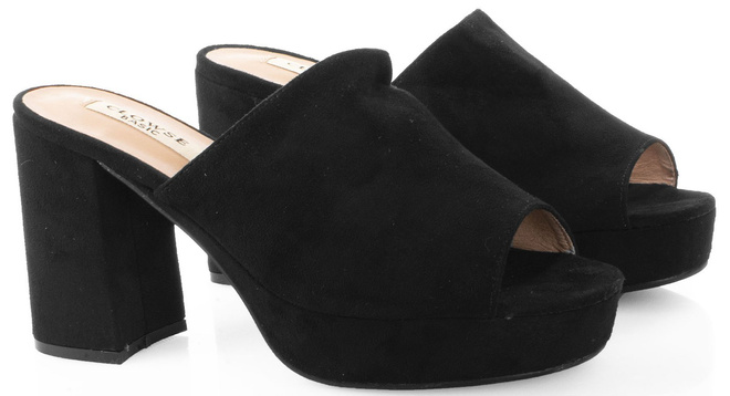 • Te czarne klapki posiadają obcas, który sprawia, że są one niezwykle wygodne. Wykonane są z wysokiej jakości materiałów. Idealne do codziennych i wyjściowych stylizacji.