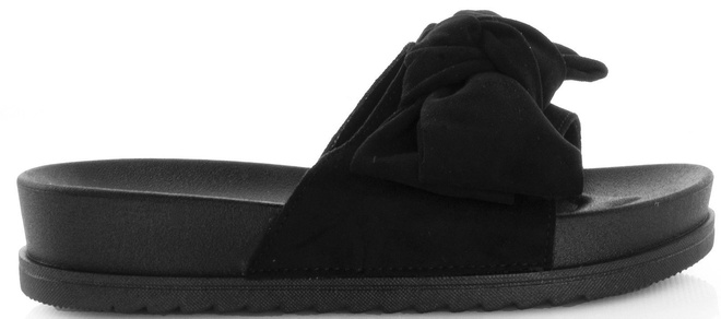 • CZARNE KLAPKI Z KOKARDĄ NA PLATFORMIE CHARAKTERYZUJĄ SIĘ KOKARDKĄ NA PASKU, KTÓRA DODAJE IM KOBIECOŚCI.