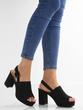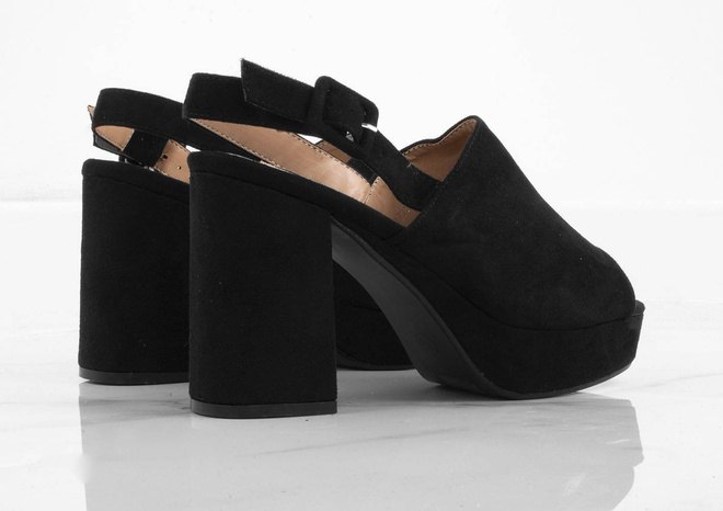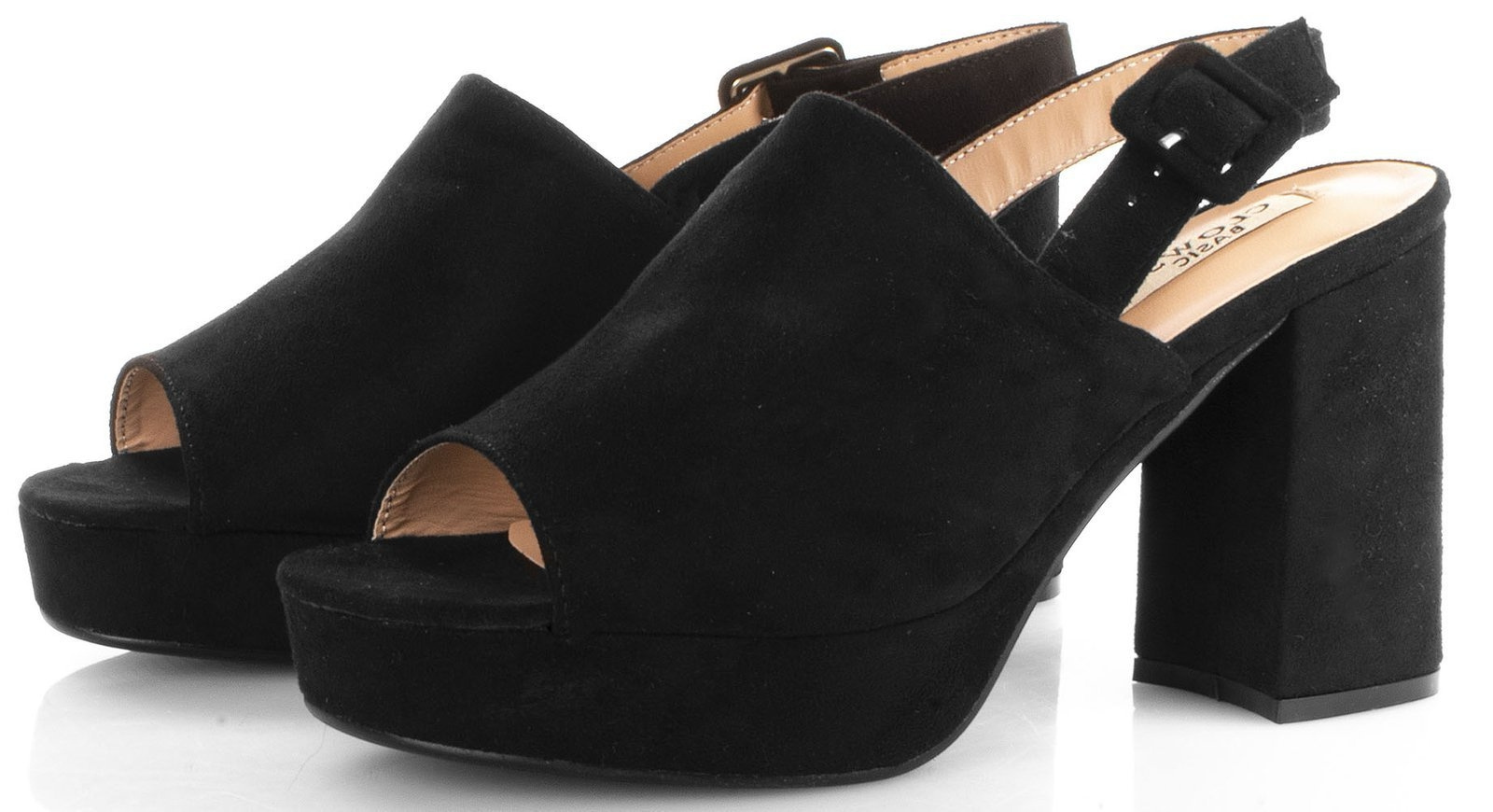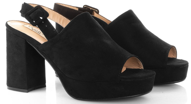Klasyczne damskie sandały wykonane ze skóry ekologicznej zamszowej. Model na wysokim, stabilnym i bardzo wygodnym słupku i dodatkowo na platformie. Zapięcie na pasek wokół kostki na sprzączkę. Idealne do każdej sukienki i na każdą okazję!