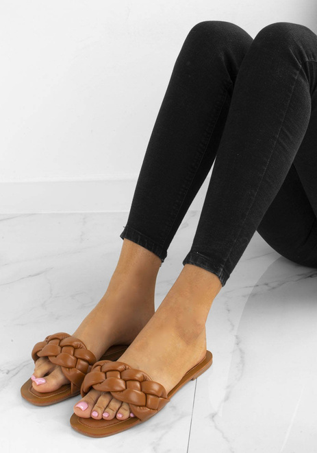 • Plecione klapki dostępne w 2 kolorach, wykonane ze skóry ekologicznej. Model o kwadratowym otwartym nosku oraz grubym plecionym pasku. Wygodne na płaskiej podeszwie.