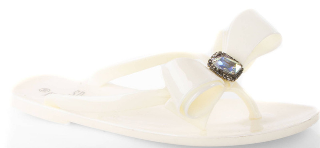 • Wygodne klapki wykonane w całości z tworzywa gumowego. Pasek zdobiony kokardką.