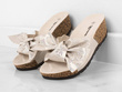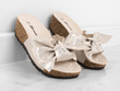 BEŻOWE KLAPKI Z KOKARDĄ NA KOTURNIE KOREK RAILI