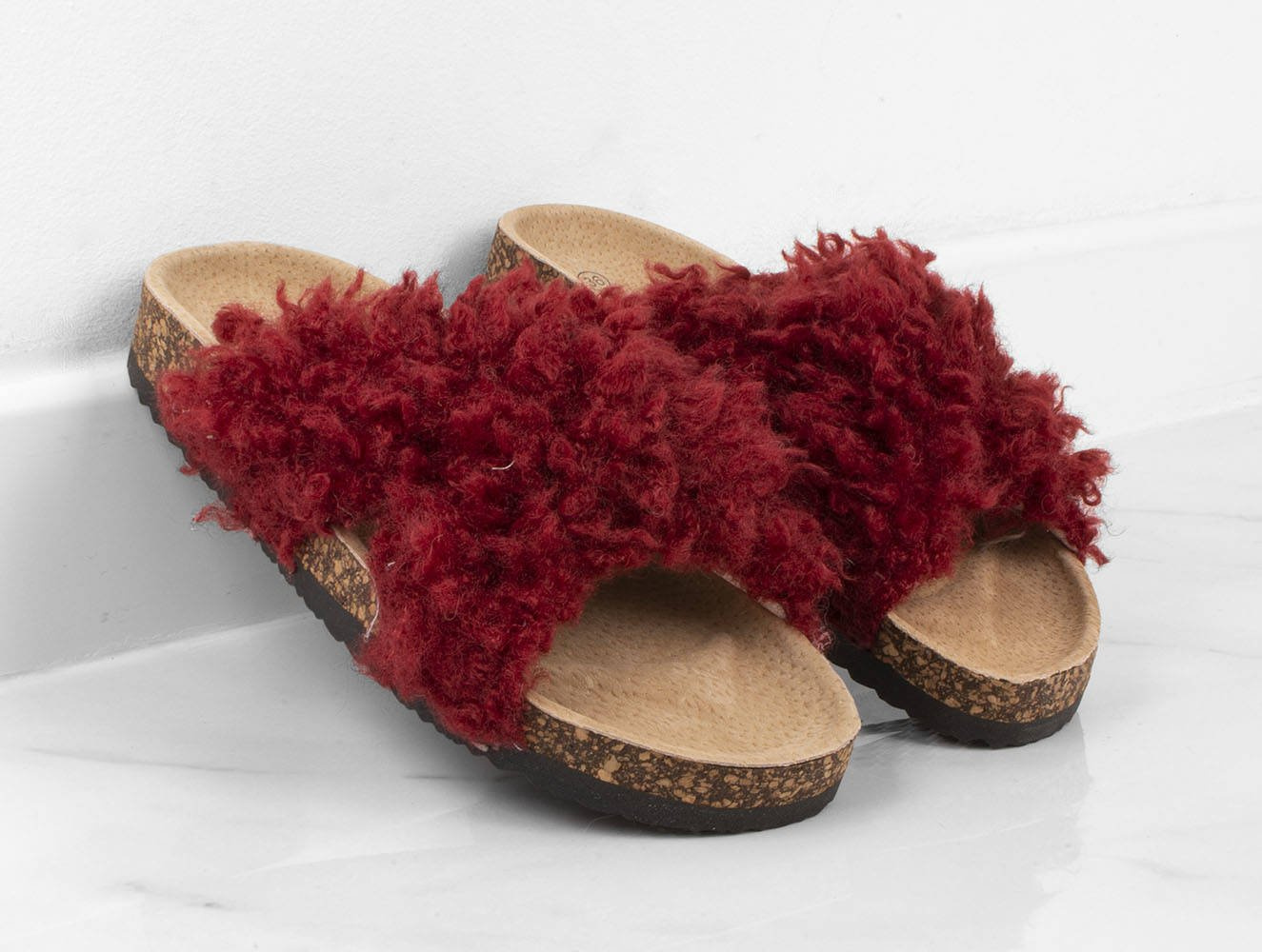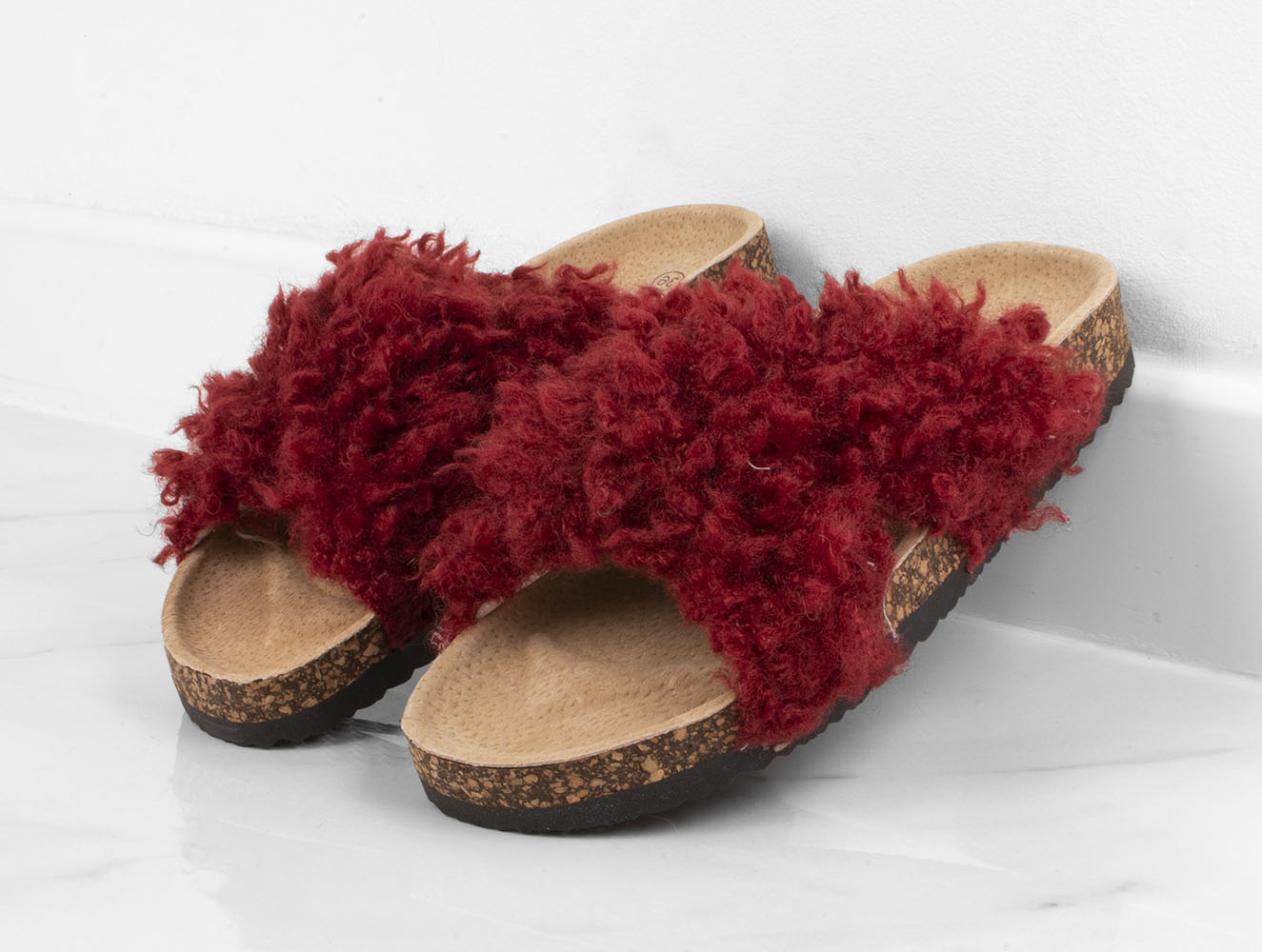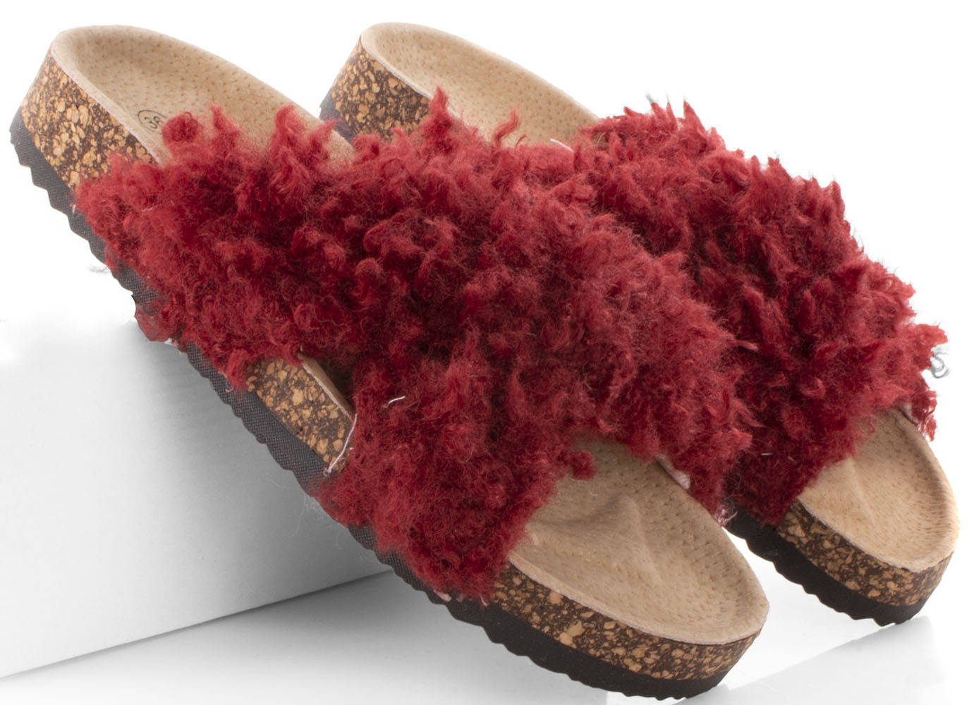 • Najmodniejsze klapki z futerkiem z odkrytymi palcami. Na korkowej podeszwie, bardzo wygodne i stylowe. Buty sprawdzą się zarówno jako kapcie po domu a także jako element codziennych stylizacji.