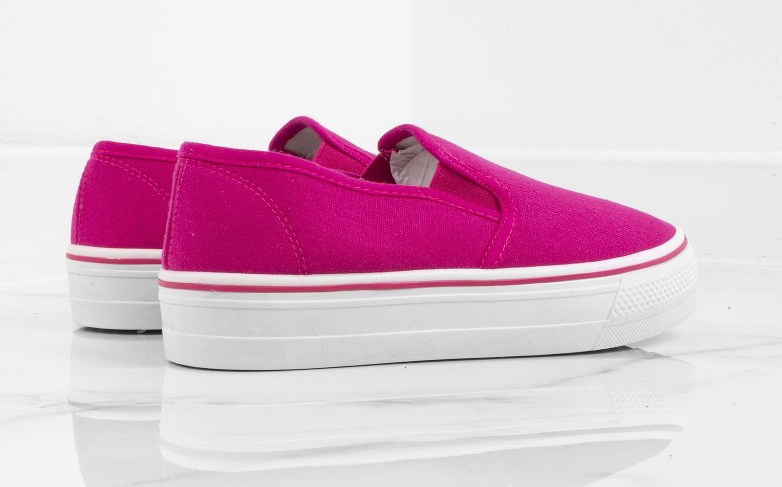 Wygodne tenisówki typu slip on wykonane z materiału tkaninowego w kolorze neonowego różu. Model na grubszej platformie. Obuwie idealnie sprawdzi się na co dzień!