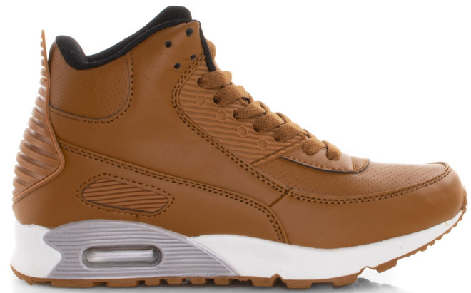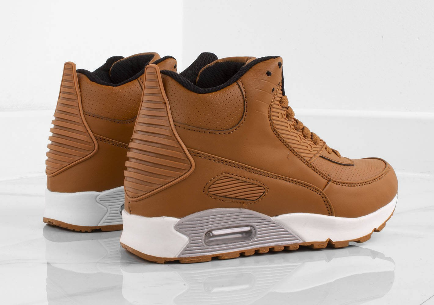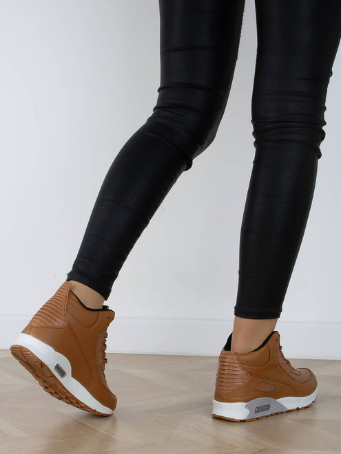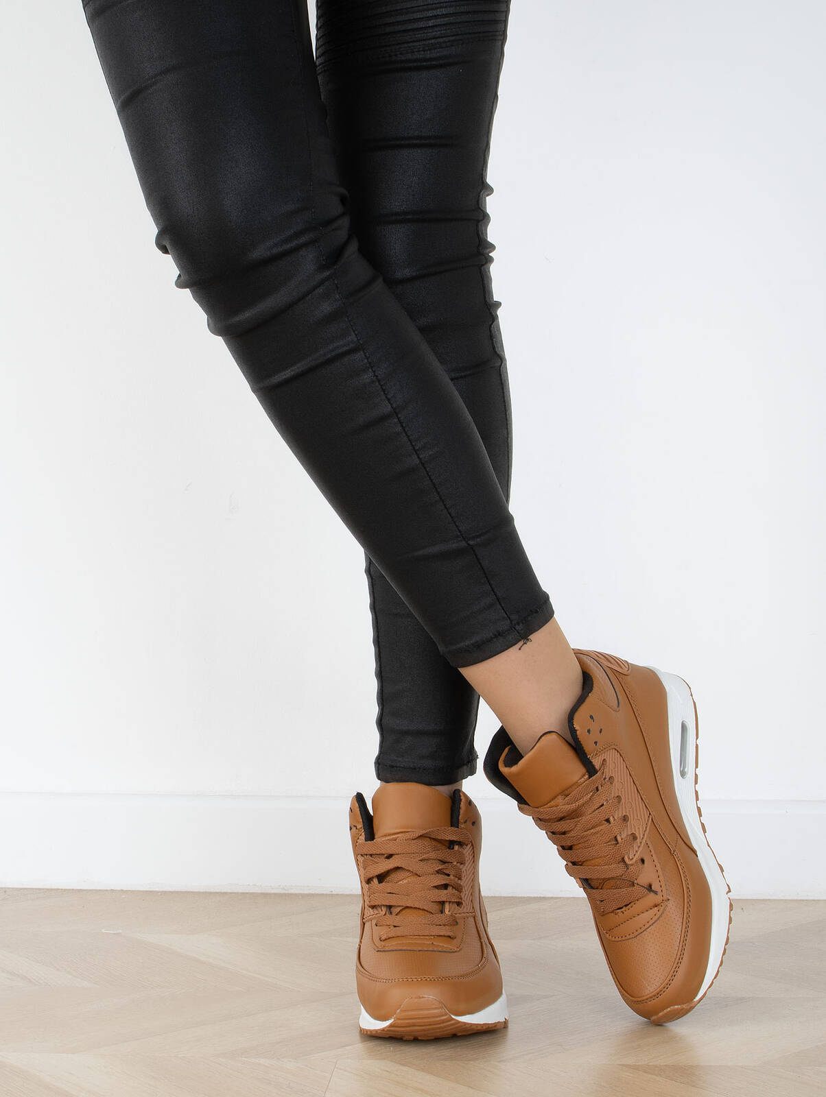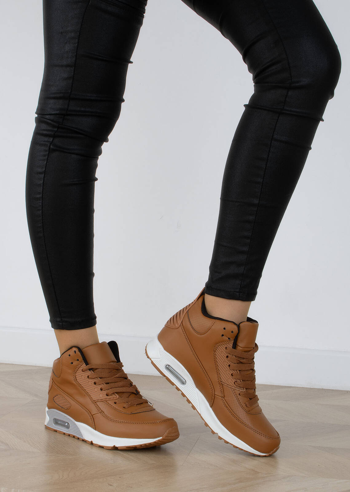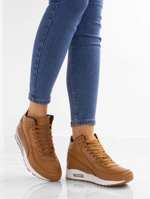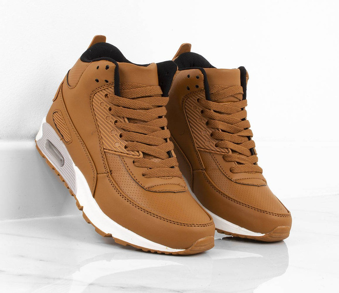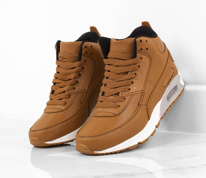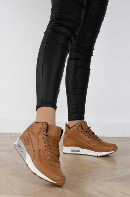 Buty sportowe ze skóry ekologicznej w kolorze camel. Model sznurowany, sięgający do kostek. Obuwie solidnie wykonane do każdej sportowej stylizacji!