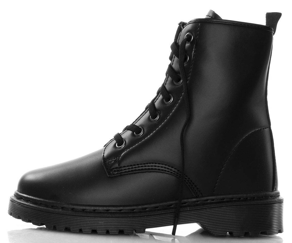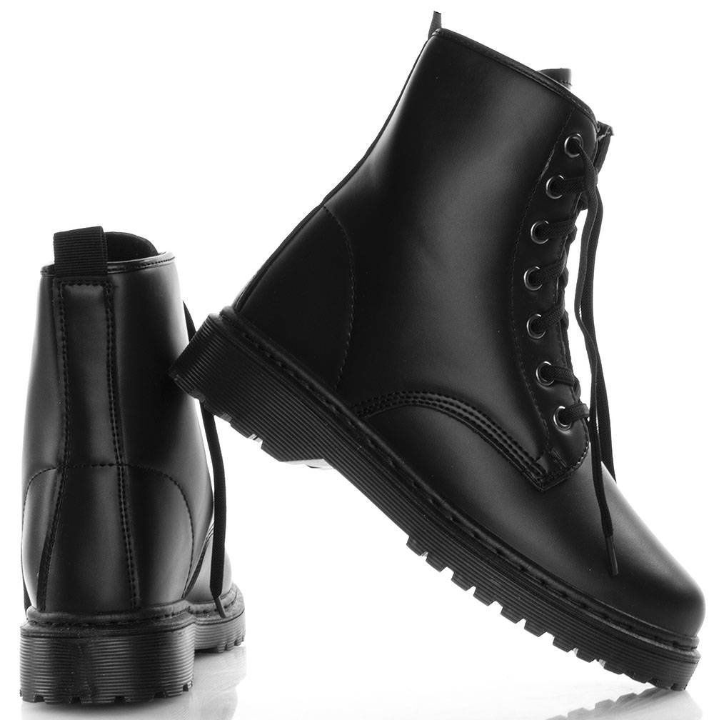 • Czarne wysokie trapery wykonane ze skóry ekologicznej, sznurowane. Model solidnie wykonany na profilowanej podeszwie. Wnętrze wyłożone tkaniną. Klasyczne i do codziennych stylizacji!