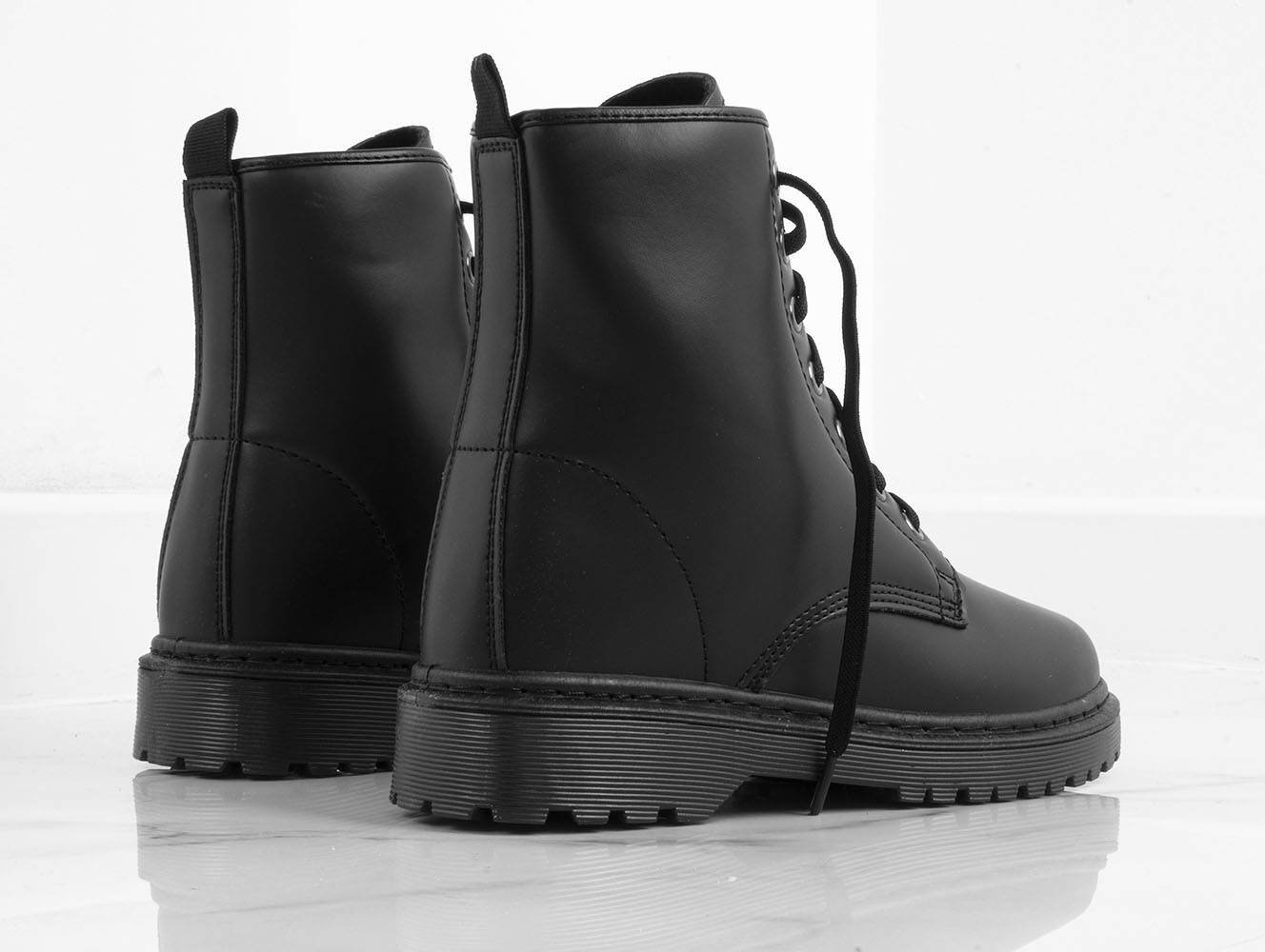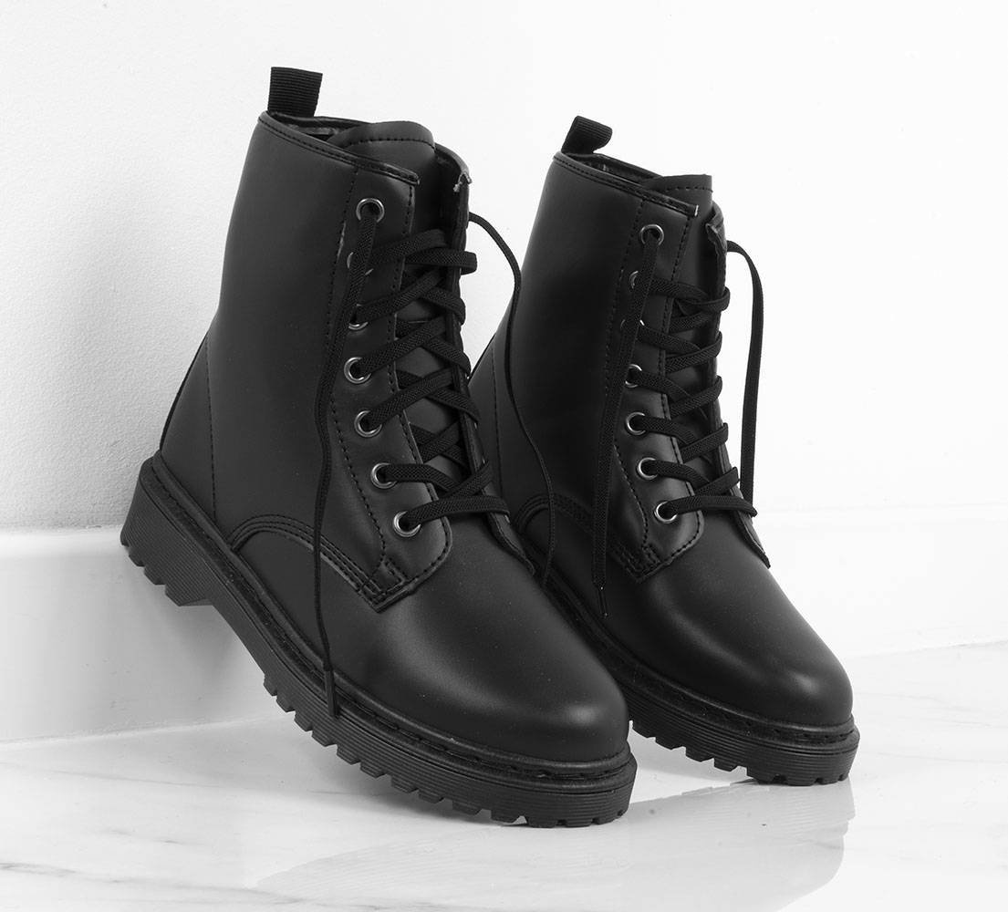 Czarne wysokie trapery wykonane ze skóry ekologicznej, sznurowane. Model solidnie wykonany na profilowanej podeszwie. Wnętrze wyłożone tkaniną. Klasyczne i do codziennych stylizacji!