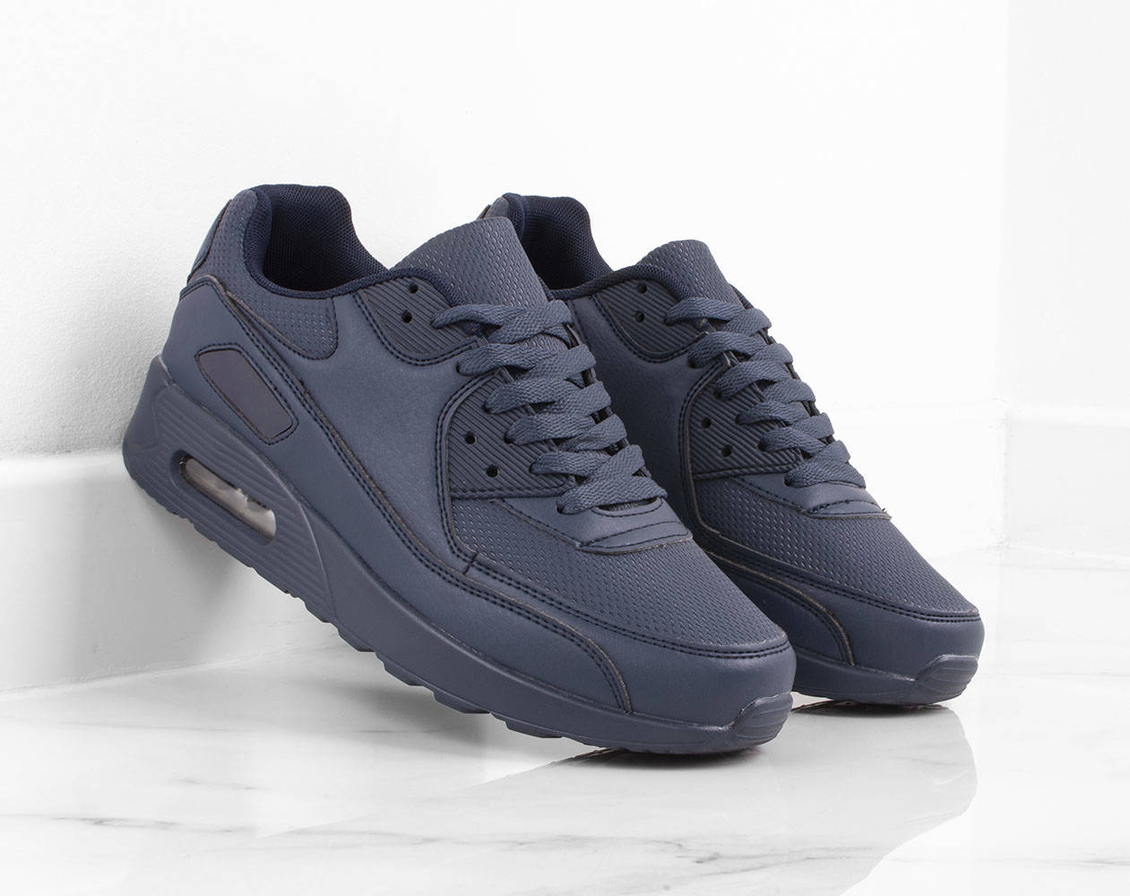 • GRANATOWE MĘSKIE SNEAKERSY SPORTOWE TO MODEL, KTÓRY SPRAWDZI SIĘ ZARÓWNO NA CODZIEŃ JAK I DO BIEGANIA CZY DŁUGICH SPACERÓW.