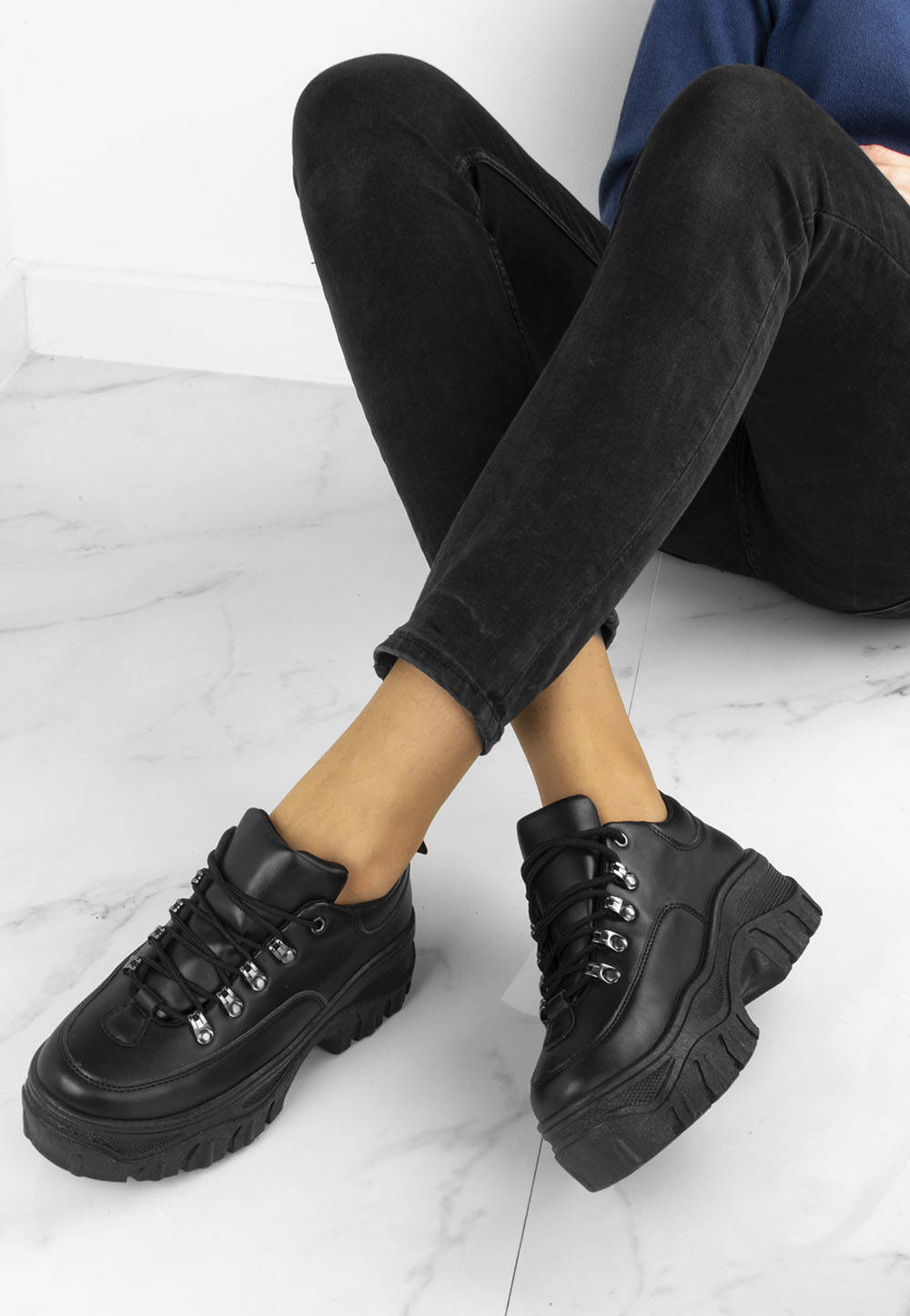 CZARNE SNEAKERSY NA PLATFORMIE HOLLIS