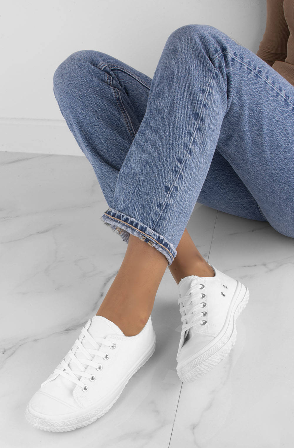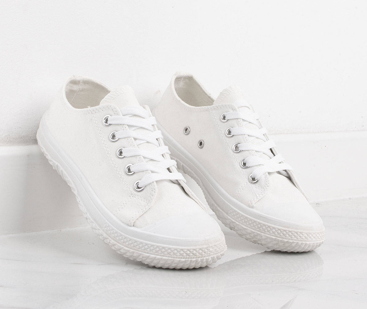 Stylowe trampki z materiału gumowego, zewnątrz trampki materiałowe. Model sznurowany, idealny dodatek na lato!