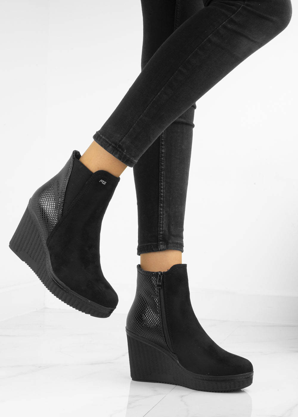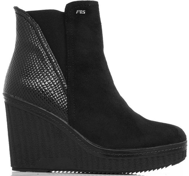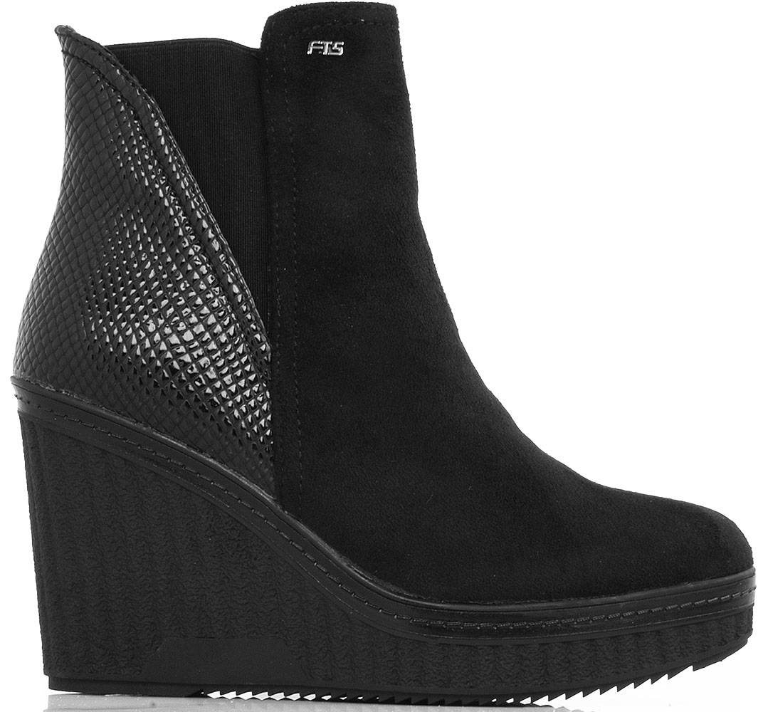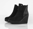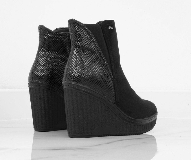 Botki wykonane z zamszu, na stabilnej i wygodnej koturnie. Model posiada delikatnie ocieplenie, zapięcie na suwak.