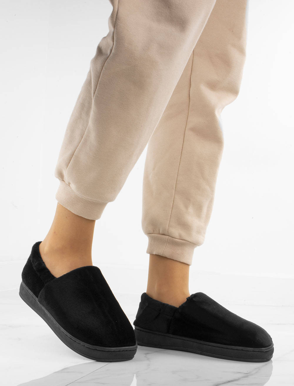 • Wygodne klapki na płaskiej podeszwie. Ocieplane futerkiem. Idealne jako kapcie po domu w zimne wieczory!