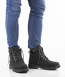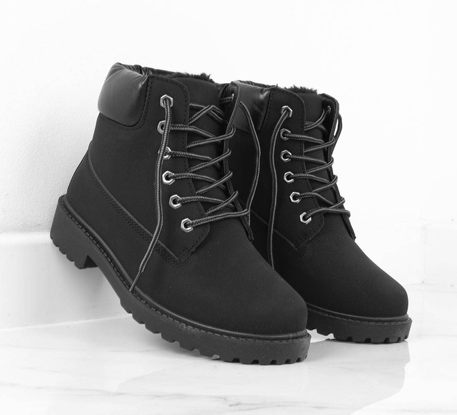 • Solidne trapery w kolorze czarnym, w środku ocieplone grubym futerkiem idealnie spiszą się jesienią jak i zimą. Sznurowane, stabilne botki z antypoślizgową podeszwą.