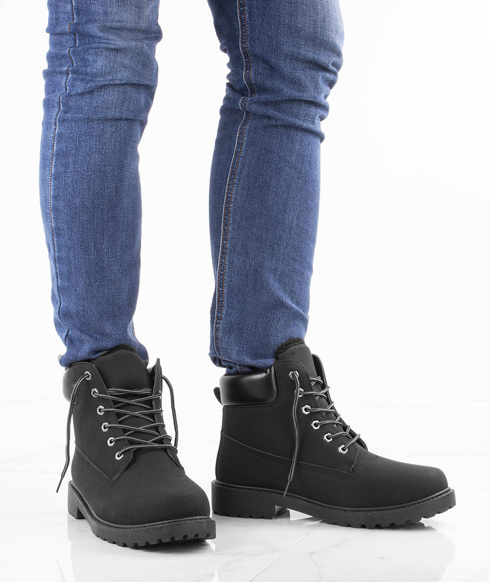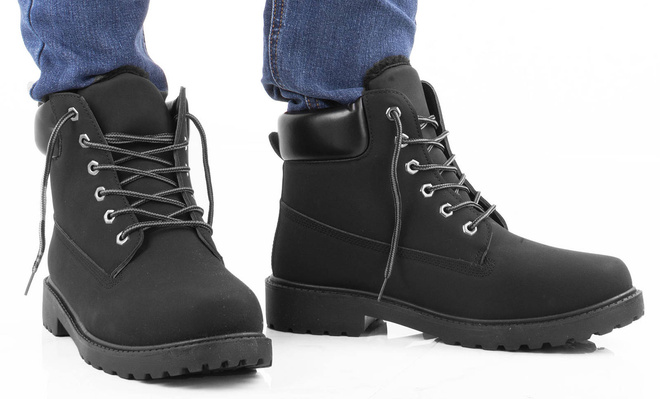 Solidne trapery w kolorze czarnym, w środku ocieplone grubym futerkiem idealnie spiszą się jesienią jak i zimą. Sznurowane, stabilne botki z antypoślizgową podeszwą.