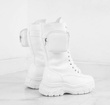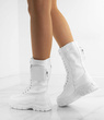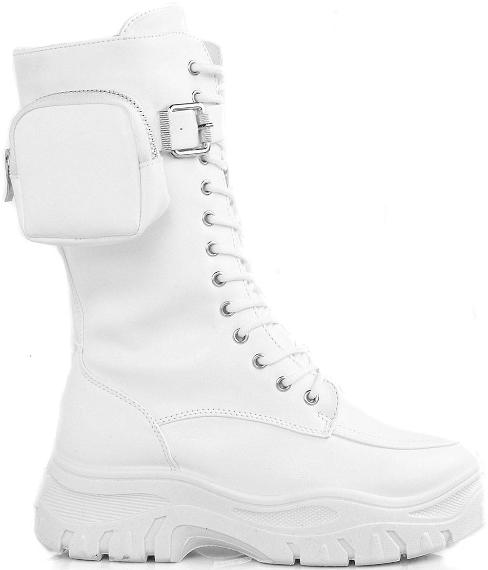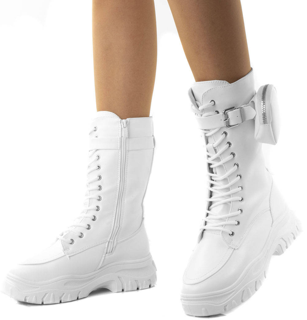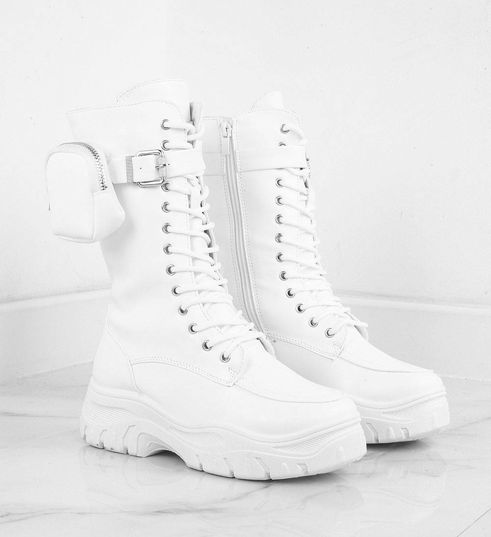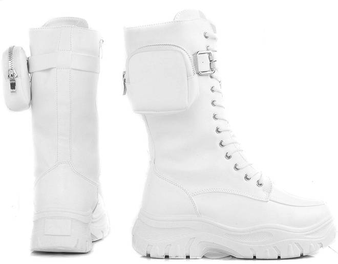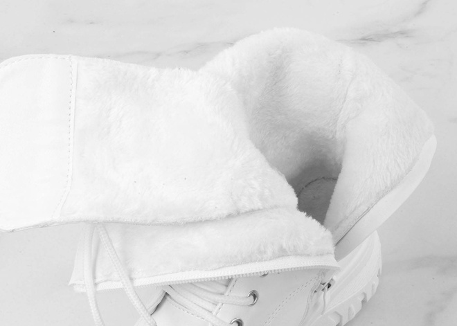 Botki damskie typu workery, wykonane ze skóry ekologicznej. Model sznurowany i zapinany suwakiem, posiada nieodpinaną kieszonkę. Środek ocieplony futerkiem na całej długości.