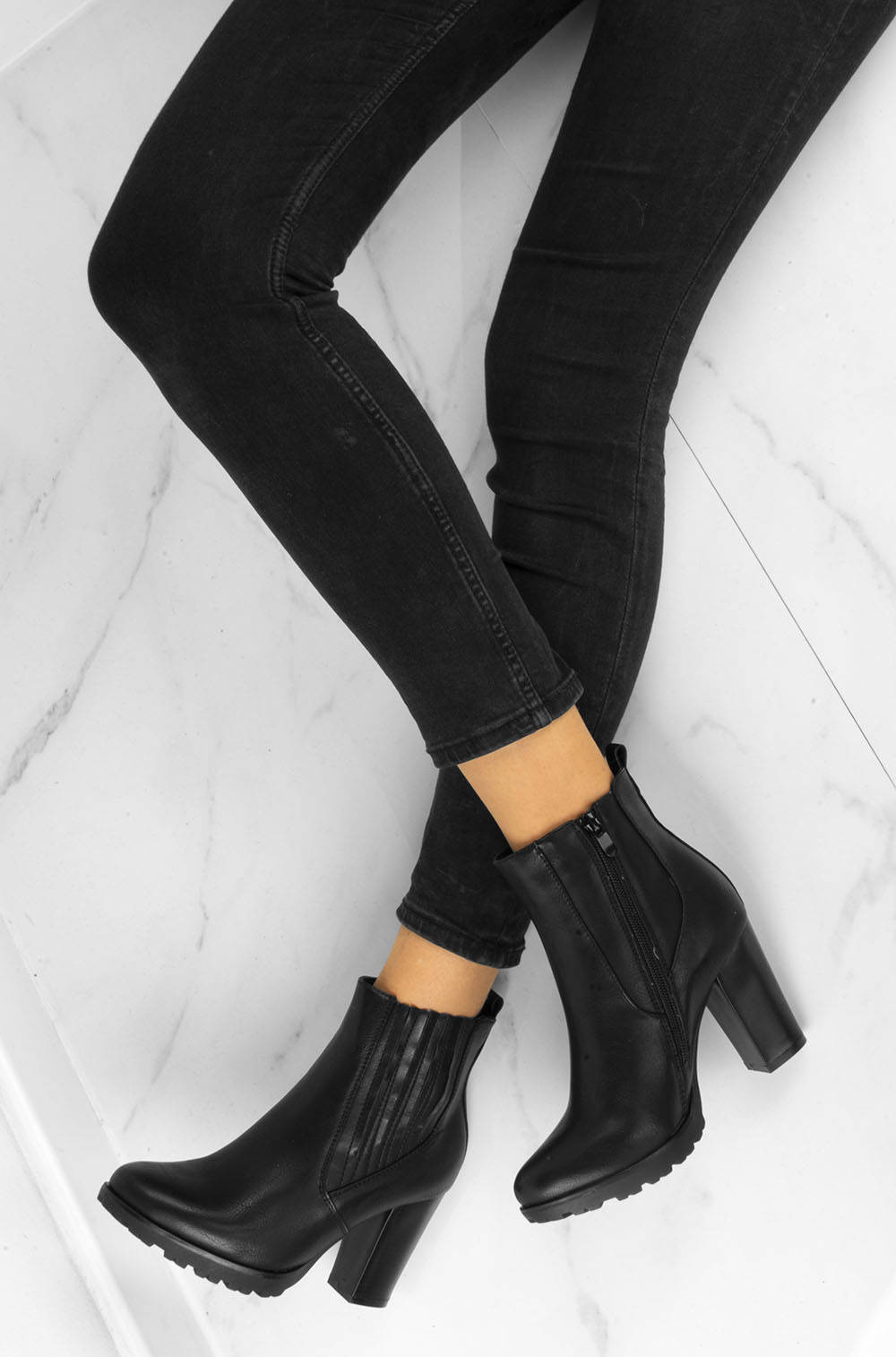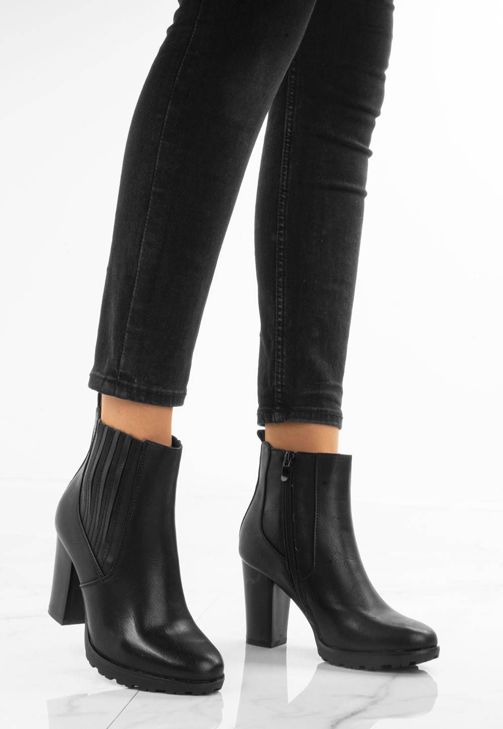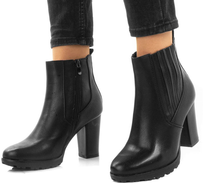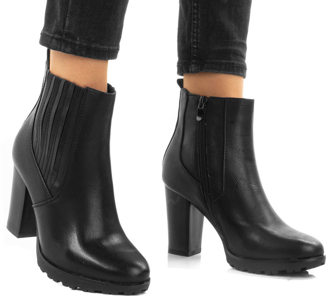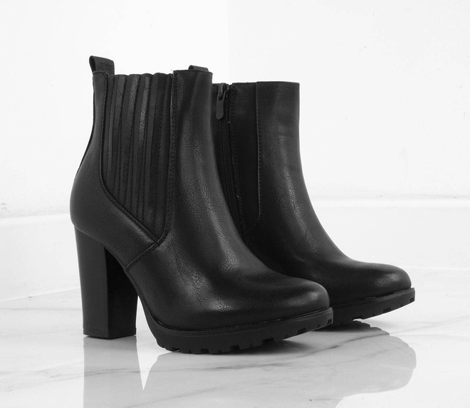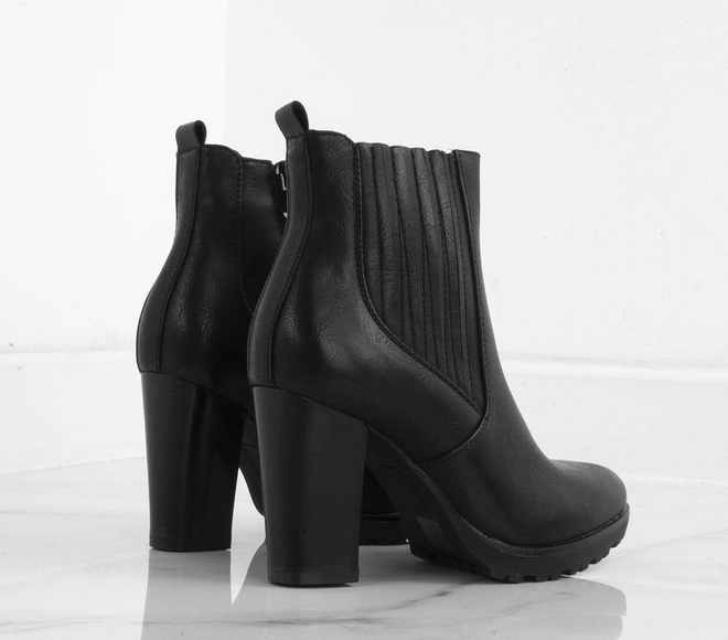 Klasyczne botki wykonane ze skóry ekologicznej. Posiadają ocieplenie w postaci futerka oraz futrzastą wkładkę. Model składa się z zapięcia na zamek