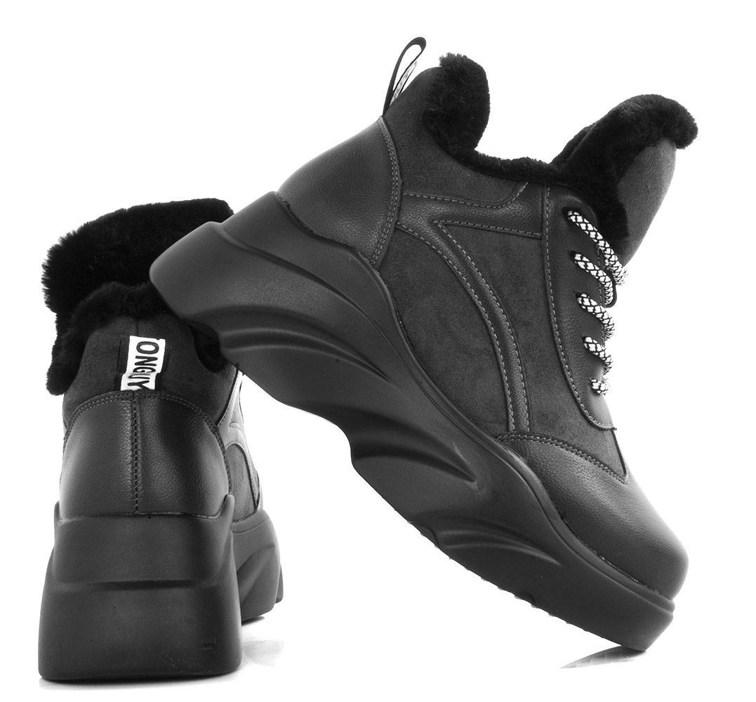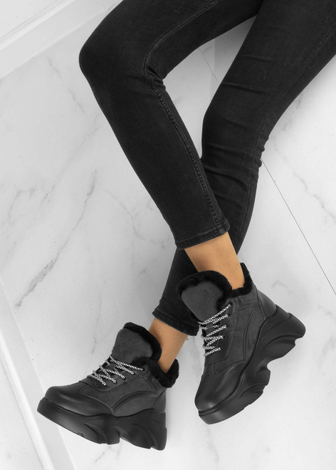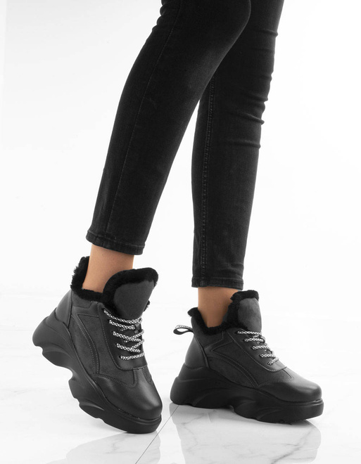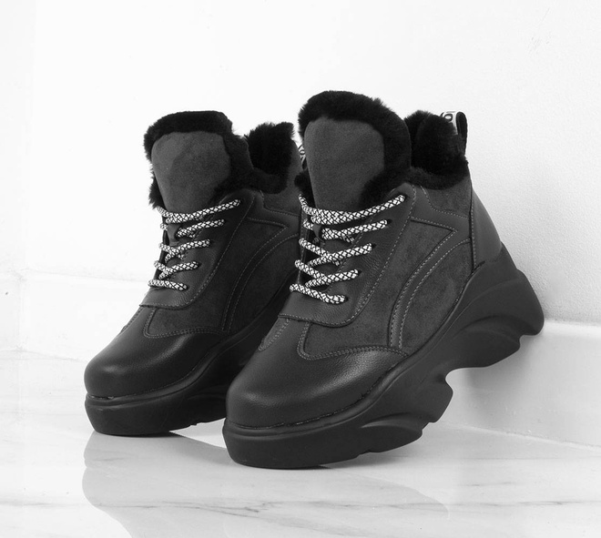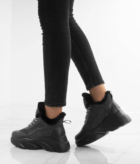 Modne sneakersy typu śniegowce idealne na jesień i zimę. Świetnie sprawdzą się również na wyjazd w góry dzięki swojej grubej i antypoślizgowej podeszwie. Wewnątrz grube futerko (również na wkładce). Najmodniejsze w tym sezonie połączenie dwóch materiałów: skóry ekologicznej i zamszu.