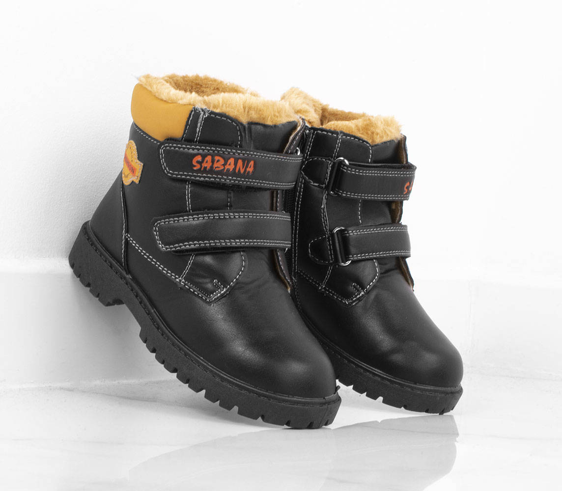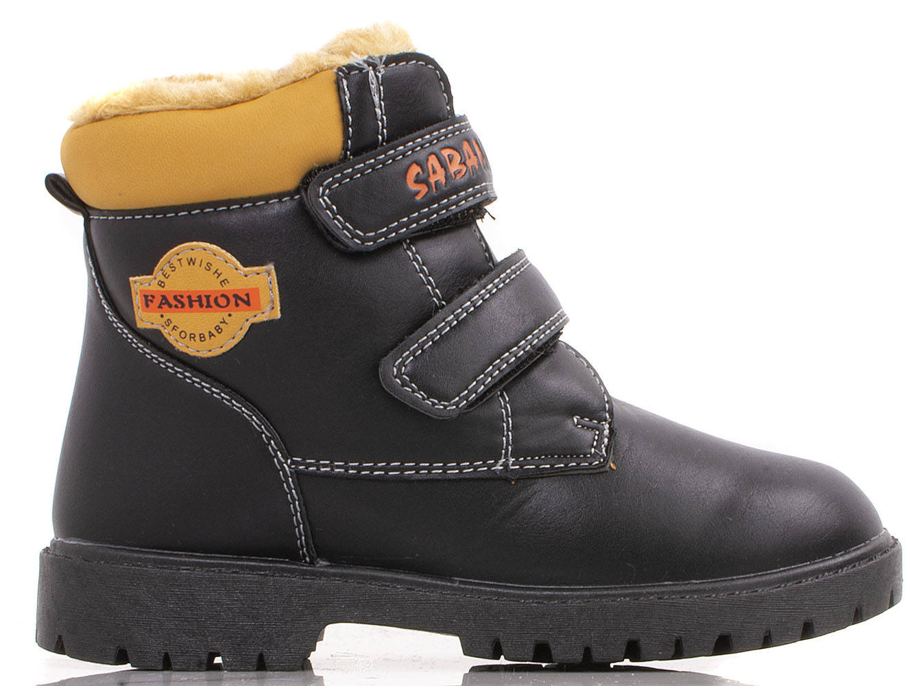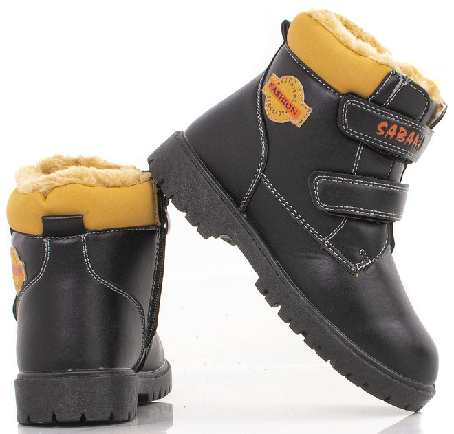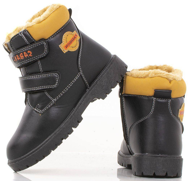 Wygodne dziecięce trapery, wykonane ze skóry ekologicznej. Wnętrze jest ocieplone kożuszkiem. Buty są zapinane rzepami oraz zamkiem na boku Sprawdzą się na chłodne zimowe dni.