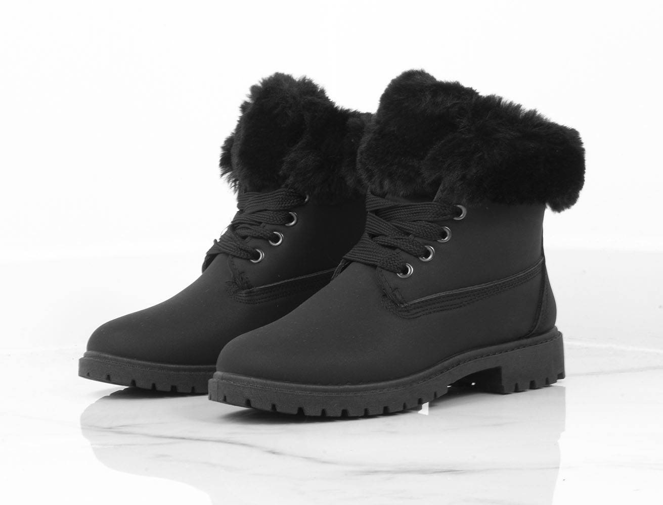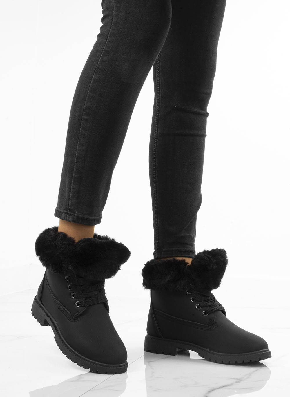 Damskie trapery wykonane ze skóry ekologicznej matowej. W środku ocieplane miękkim futrzastym materiałem. Model na płaskim obcasie, ciepły, stylowy i wygodny!