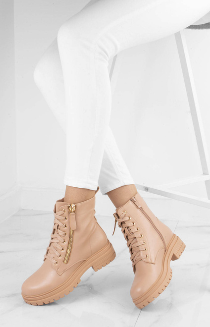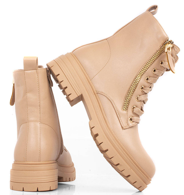 BEŻOWE BOTKI GLANY TRAPERY SUWAK ZINNA