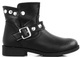 Stylowe botki damskie wykonane ze skóry ekologicznej, posiadają ozdobny pasek z dżetami i klamerką z boku. Zapięcie w postaci dwóch zatrzasków po bokach cholewki. Tył cholewki również zdobiony dżetami. Botki na wygodnym, płaskim obcasie.
