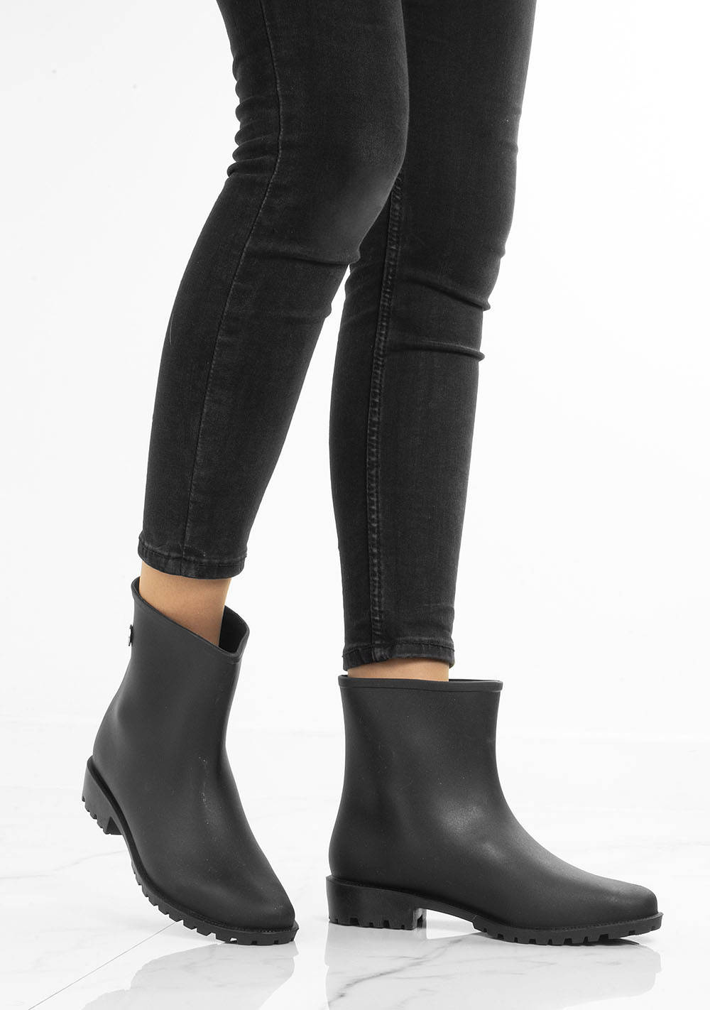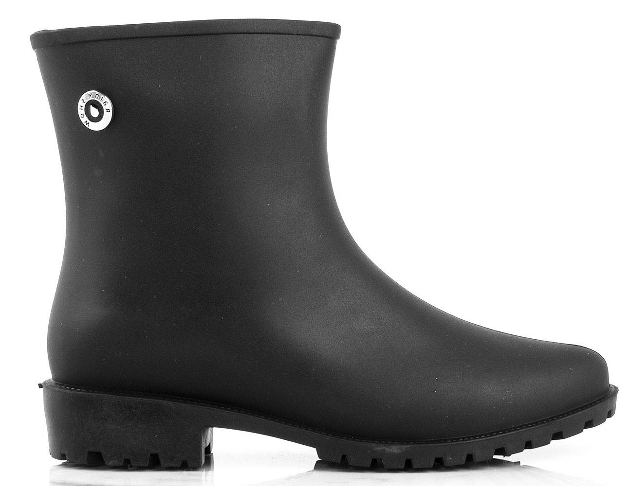 Eleganckie matowe kalosze, wykonane z tworzywa gumowego. Z boku cholewki ozdobny element. Idealne na deszczową pogodę!