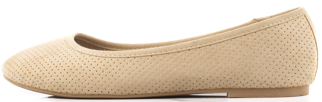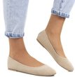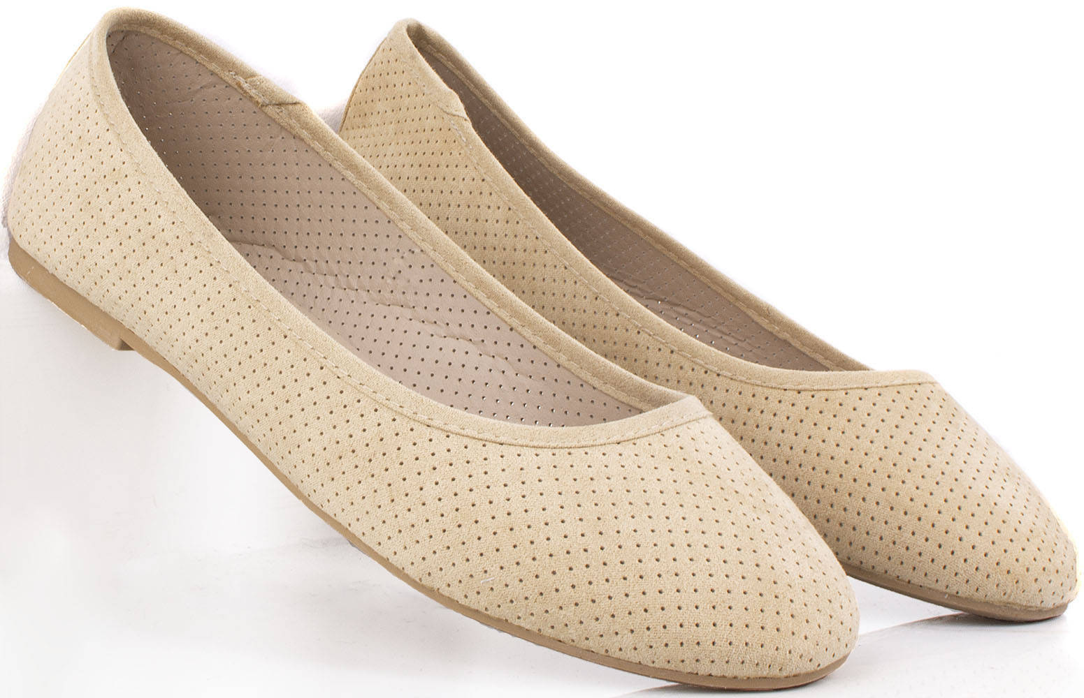 Lekkie balerinki damskie wykonane z materiału zamszowego. Model z ażurowym wykończeniem, idealny zarówno do sukienki jak i jeansów!