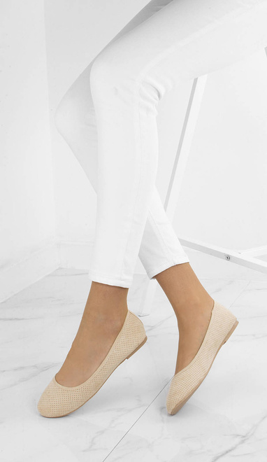 BEŻOWE AŻUROWE BALERINKI KAMI
