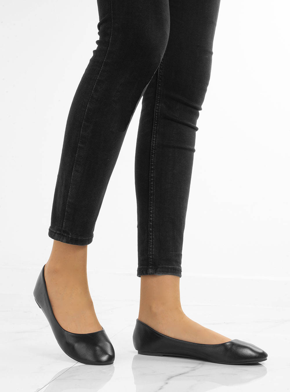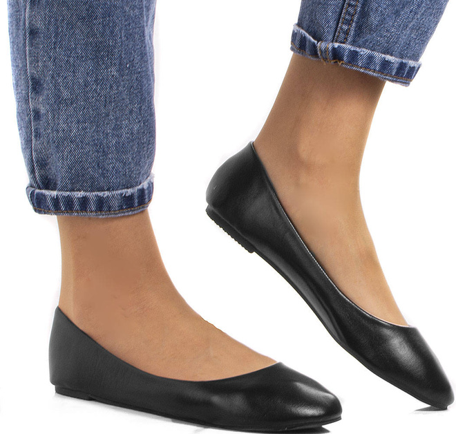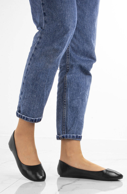 Wygodne baleriny na płaskim obcasie w kolorze klasycznej czerni. Model w całości wykonany ze skóry ekologicznej. Pasują do sukienki i spodni, na spacer i do pracy!