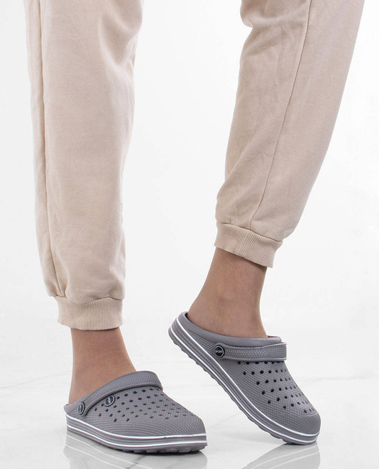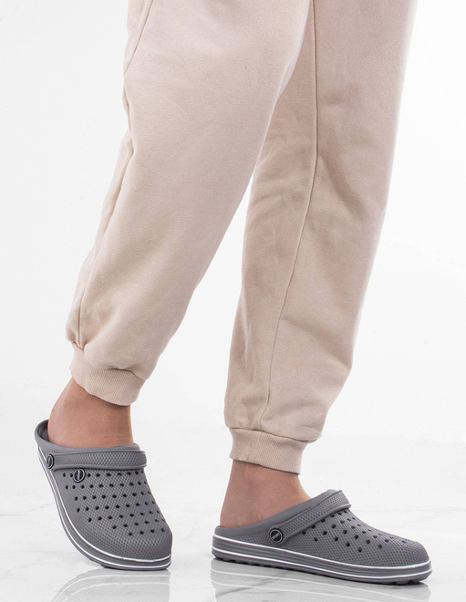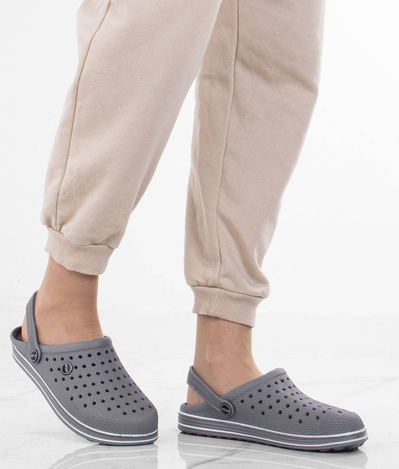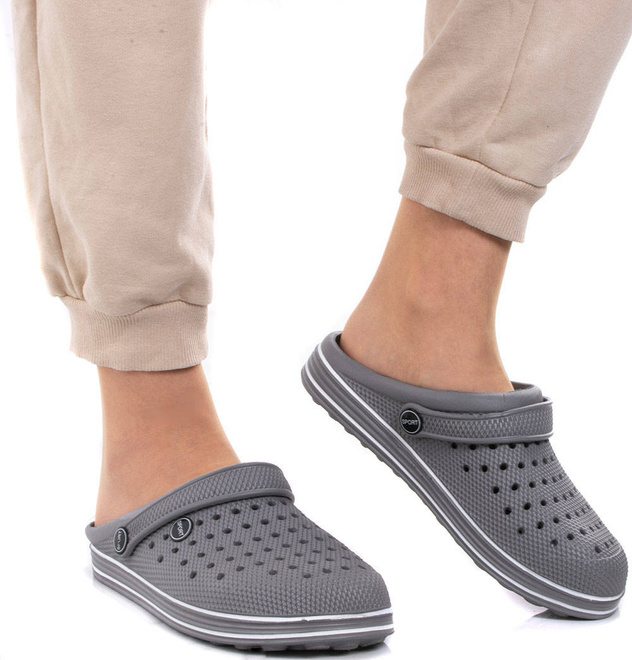 Klasyczne, klapki typu kroks, wygodne i przewiewne. Wykonane z tworzywa piankowego. Klapki można nosić na dwa sposoby, dzięki ruchomemu paskowi na pięcie.