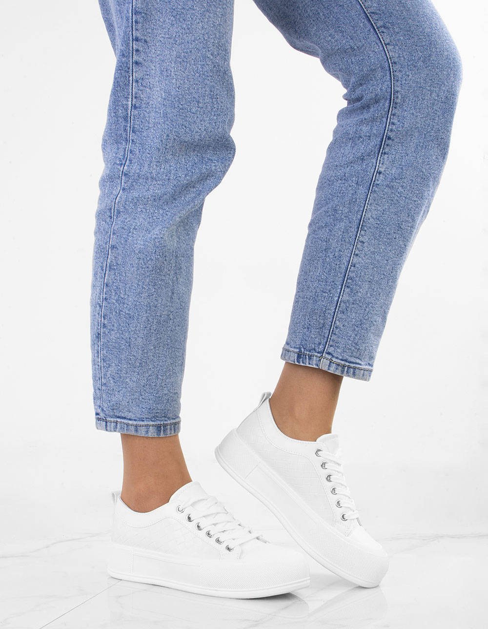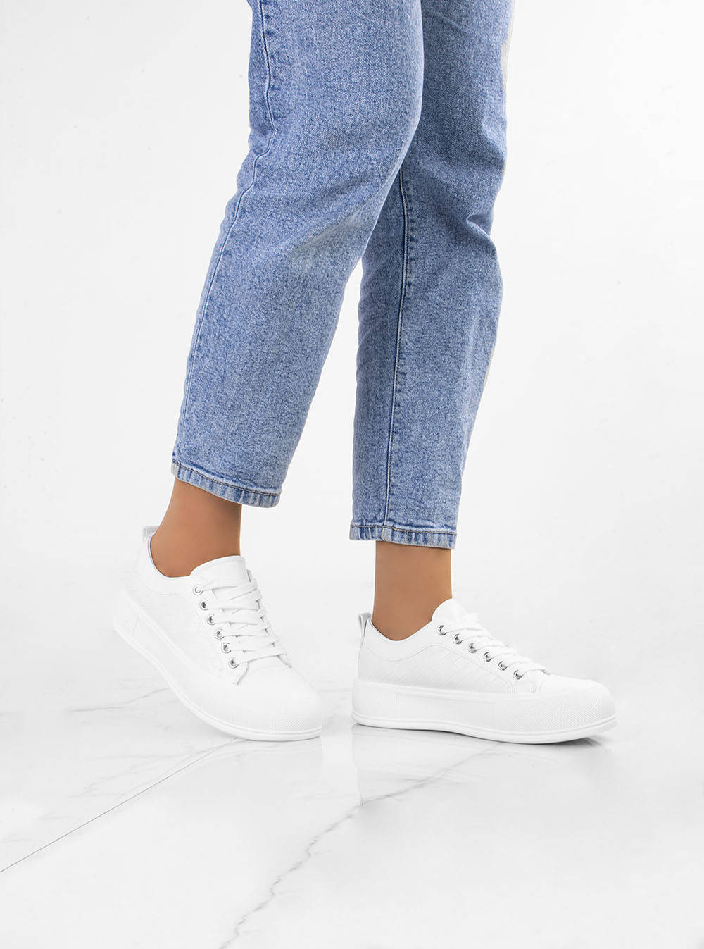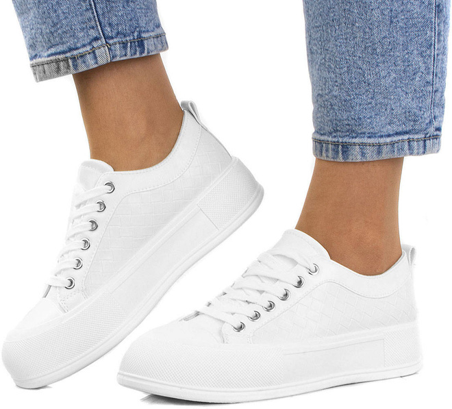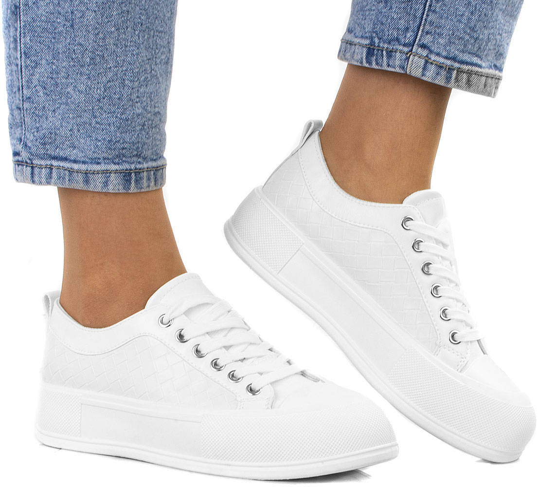 • Najmodniejszy model butów tej wiosny - trampki na platformie. Wykonane z wysokiej jakości miękkiej skóry ekologicznej. Model ze sznurowaną cholewką. Na wygodnej, grubszej podeszwie typu platforma.