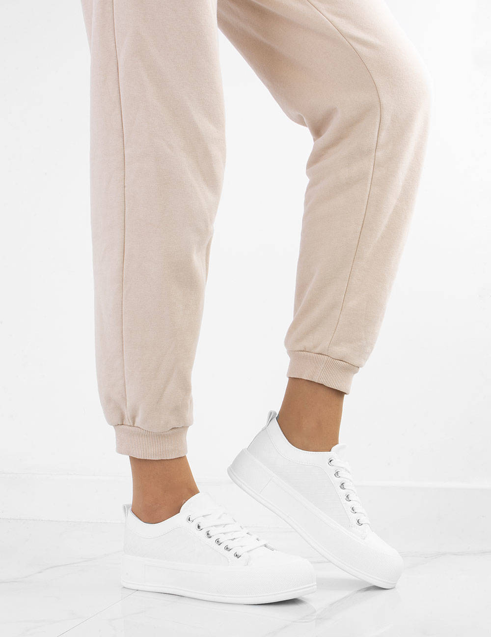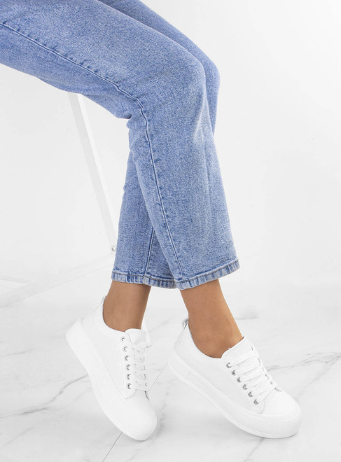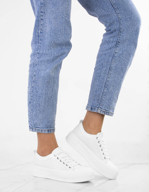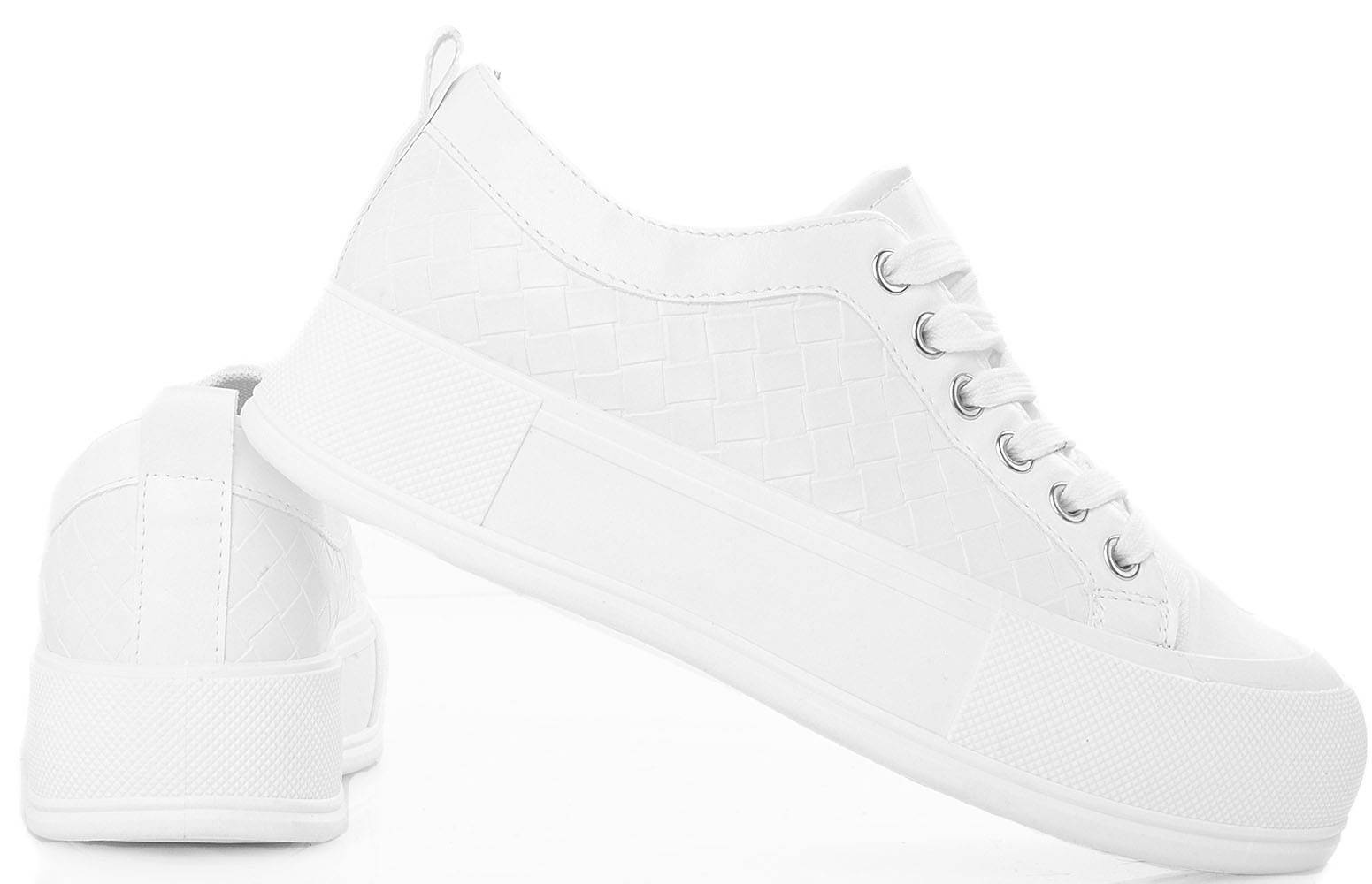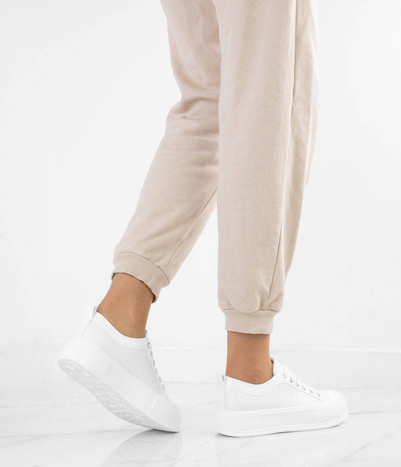 BIAŁE SKÓRZANE TRAMPKI NA PLATFORMIE SAFINA