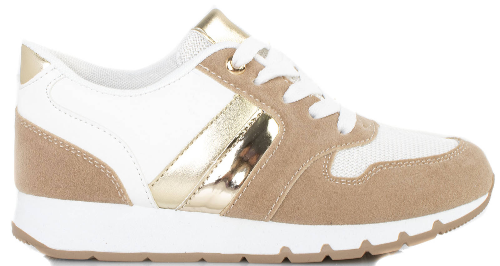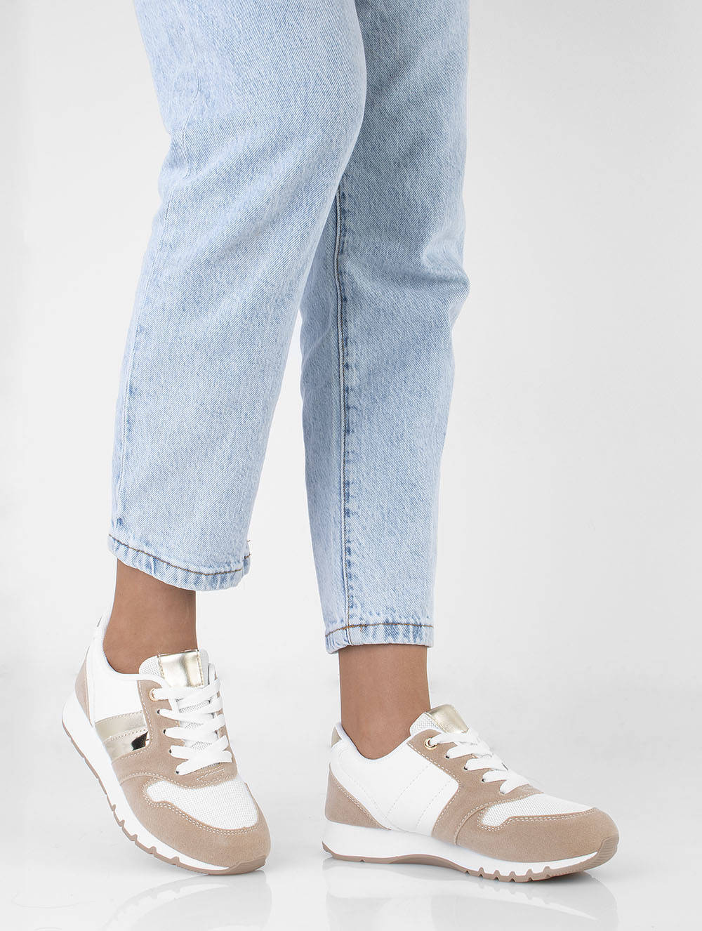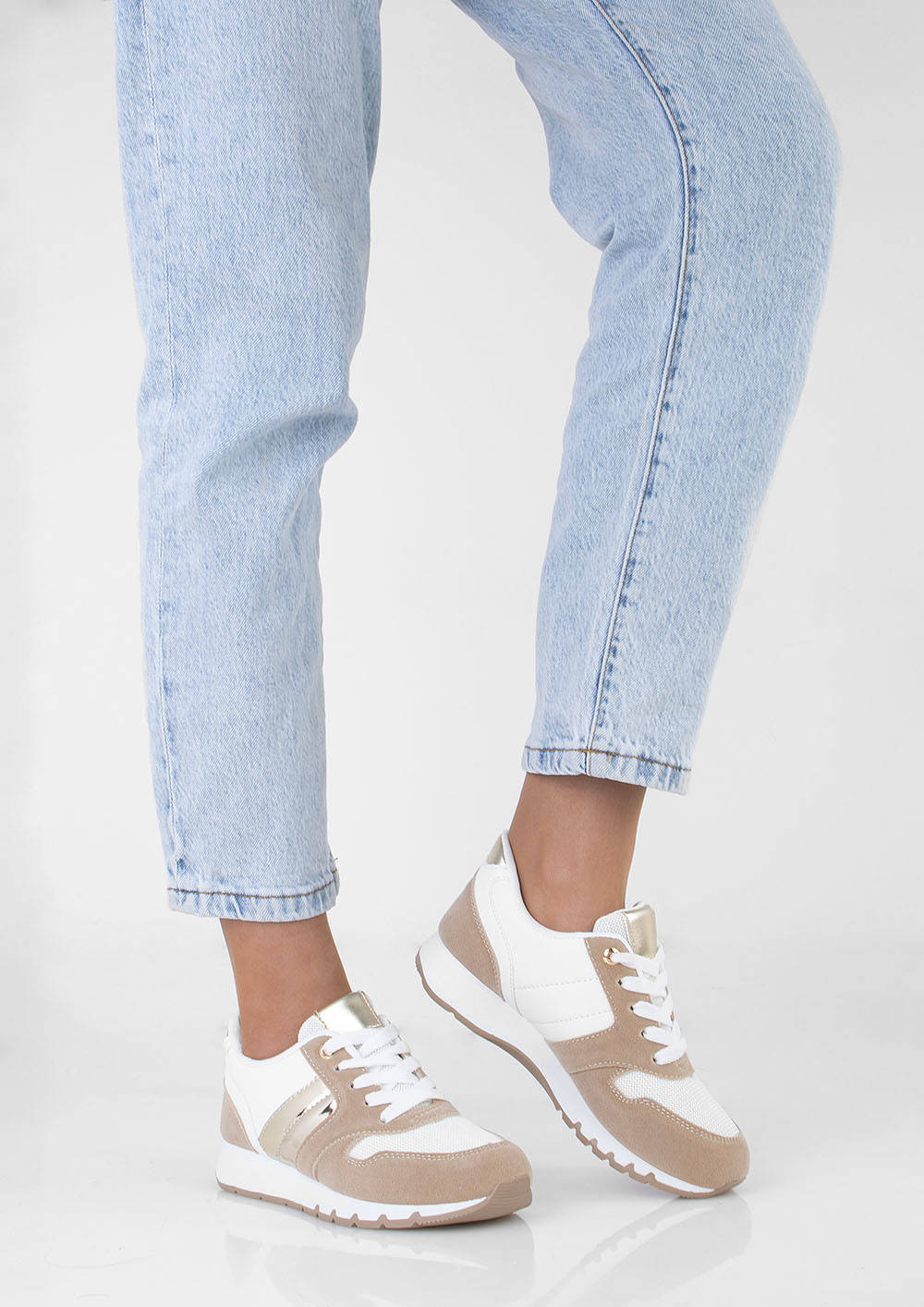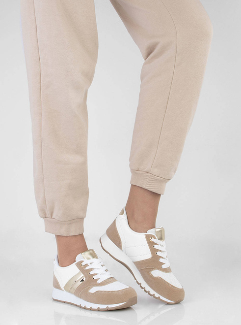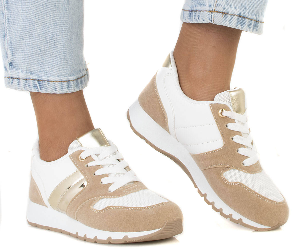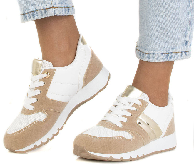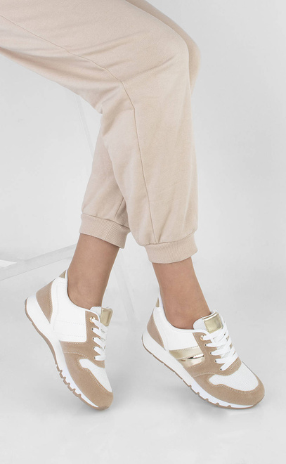 Sportowe buty damskie typu sneakersy. Obuwie sznurowane, wkładka tkaninowa. Wykonane z połączenia ekoskóry, zamszu oraz siatki na przodzie buta . Z pewnością świetnie się sprawdzą z dresami lub jeansami!