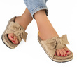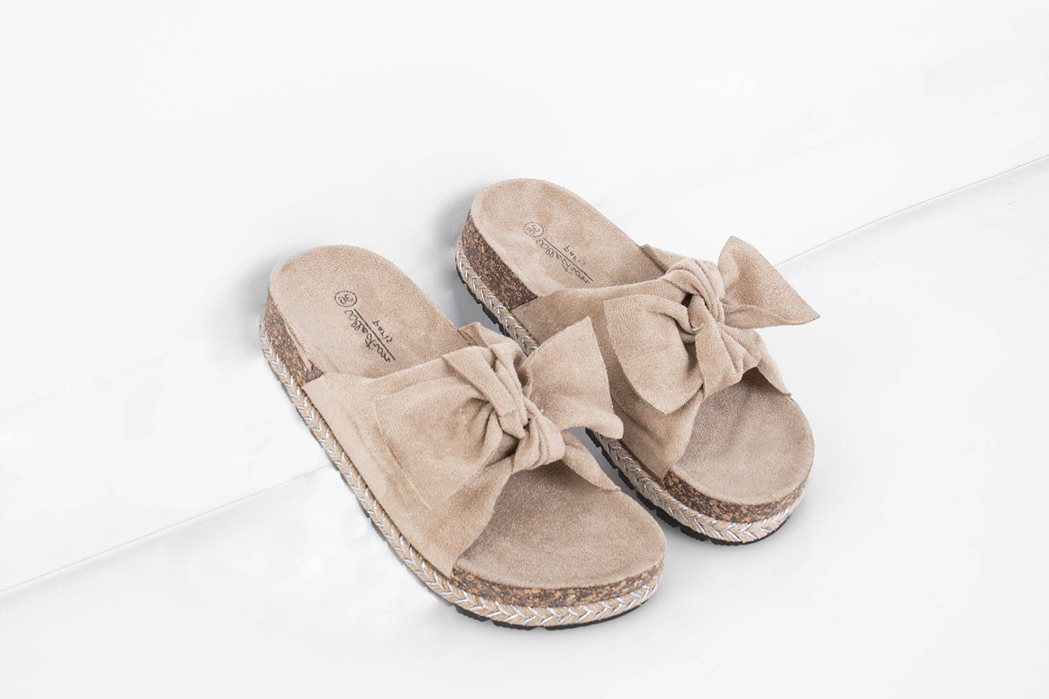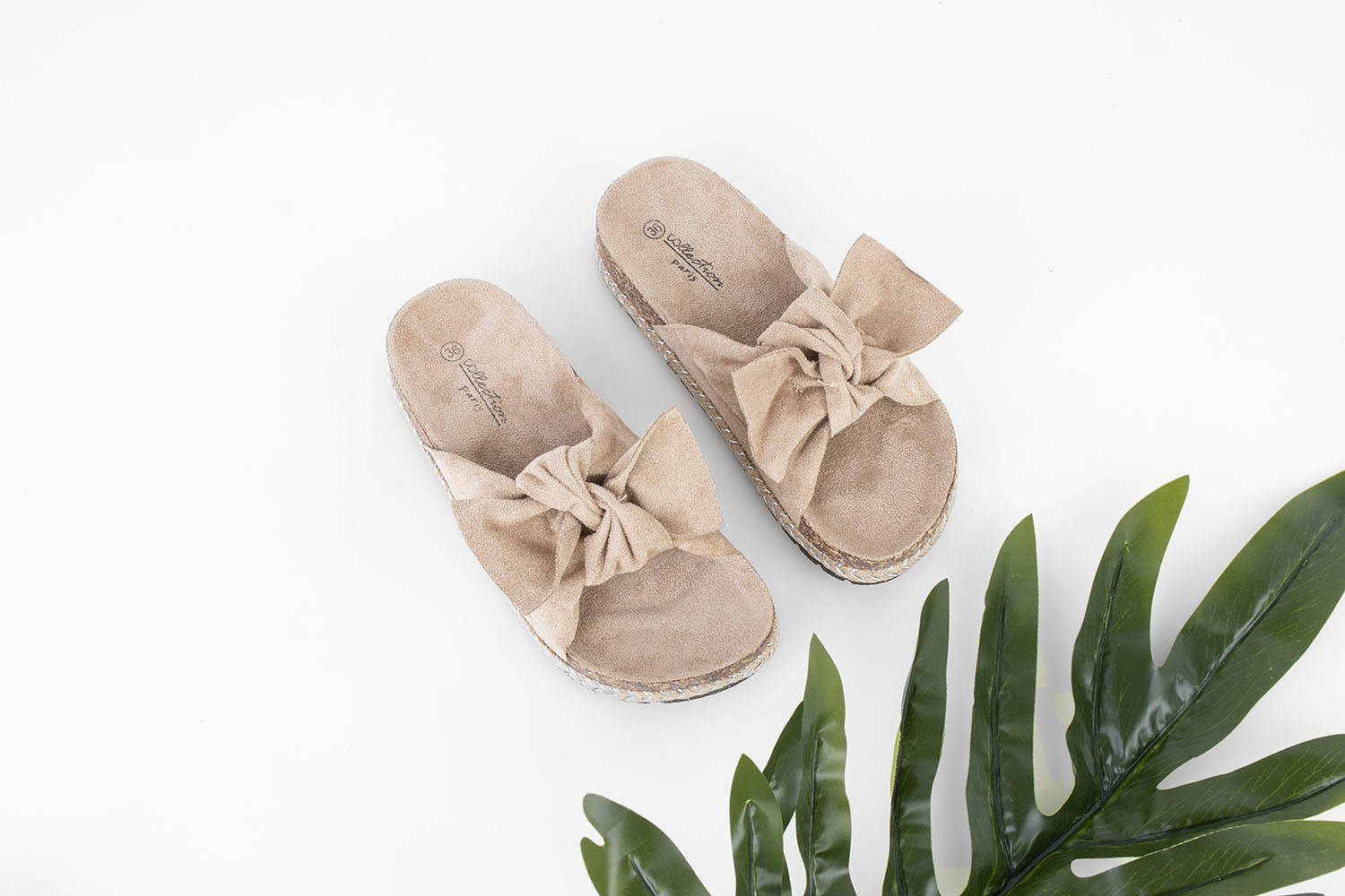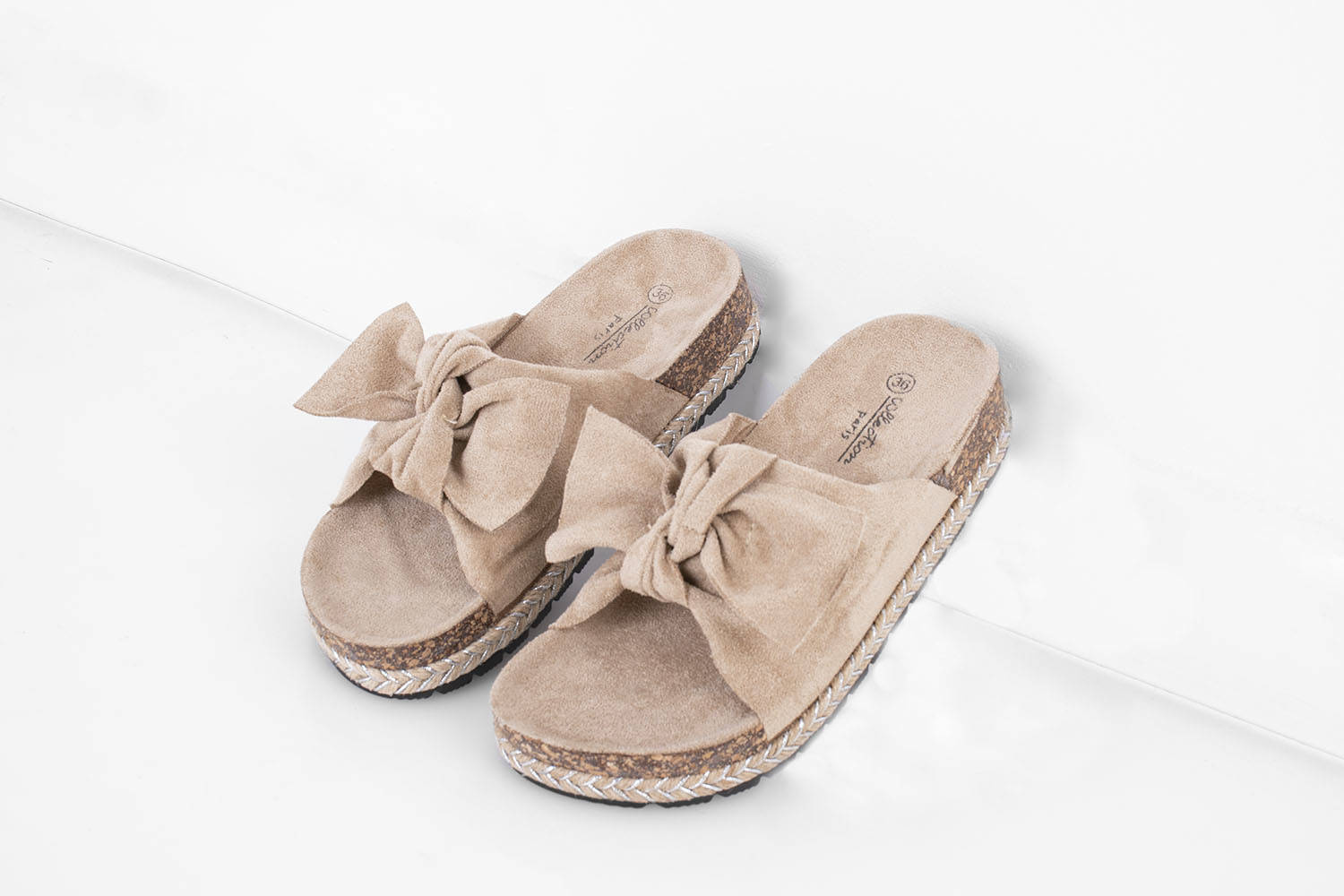 BEŻOWE KLAPKI Z KOKARDĄ NA PLATFORMIE MULES