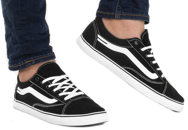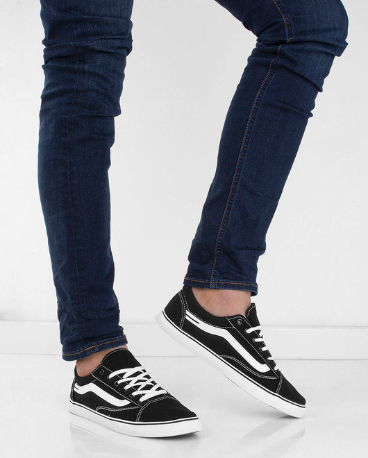 • Męskie tenisówki na płaskiej gumowej podeszwie. Wkładka oraz cholewka wykonane z materiału tkaninowego. Idealne na co dzień!