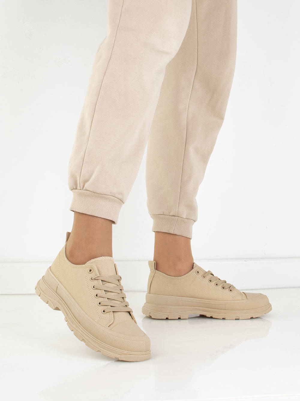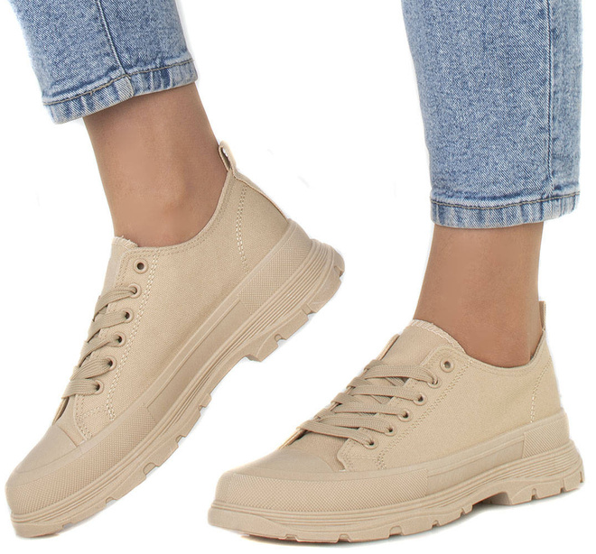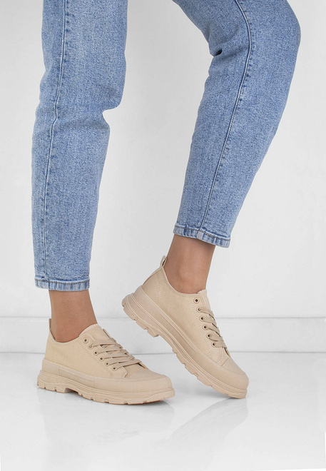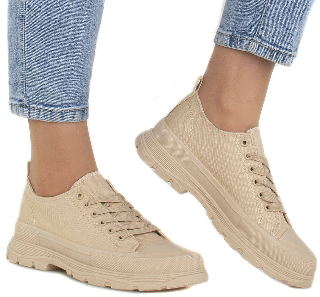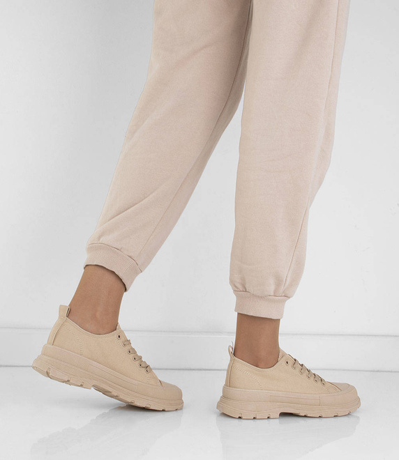 BEŻOWE NISKIE TRAMPKI NA PLATFORMIE RAFINA