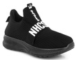 • Czarne, klasyczne sneakersy, model wykonany z materiału tkaninowego. Obuwie wsuwane, lekkie i na wygodnej podeszwie. Model uniwersalny, pasuje do wszystkiego.