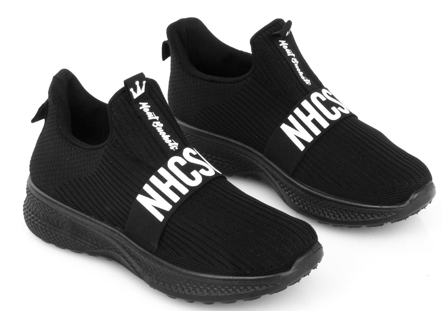 Czarne, klasyczne sneakersy, model wykonany z materiału tkaninowego. Obuwie wsuwane, lekkie i na wygodnej podeszwie. Model uniwersalny, pasuje do wszystkiego.